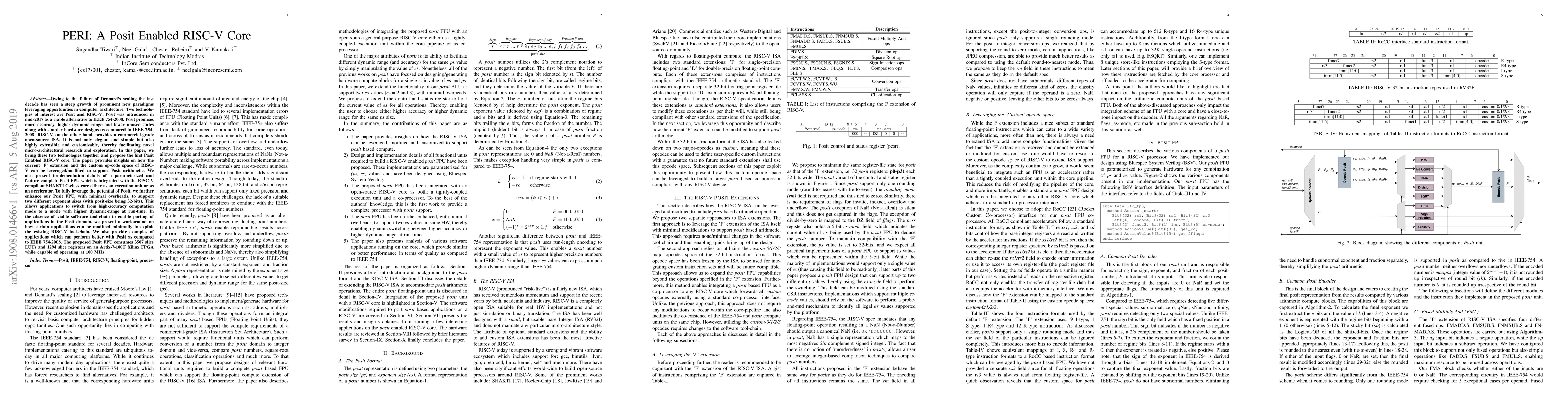 The paper proposes a Posit-enabled RISC-V core, integrating Posit arithmetic with the RISC-V instruction set architecture (ISA) using the 'F' extension and custom opcode space. It details a parameterized and feature-complete Posit FPU, capable of supporting two different exponent sizes (32-bit Posit) for run-time switching between high-accuracy and high-dynamic-range modes.