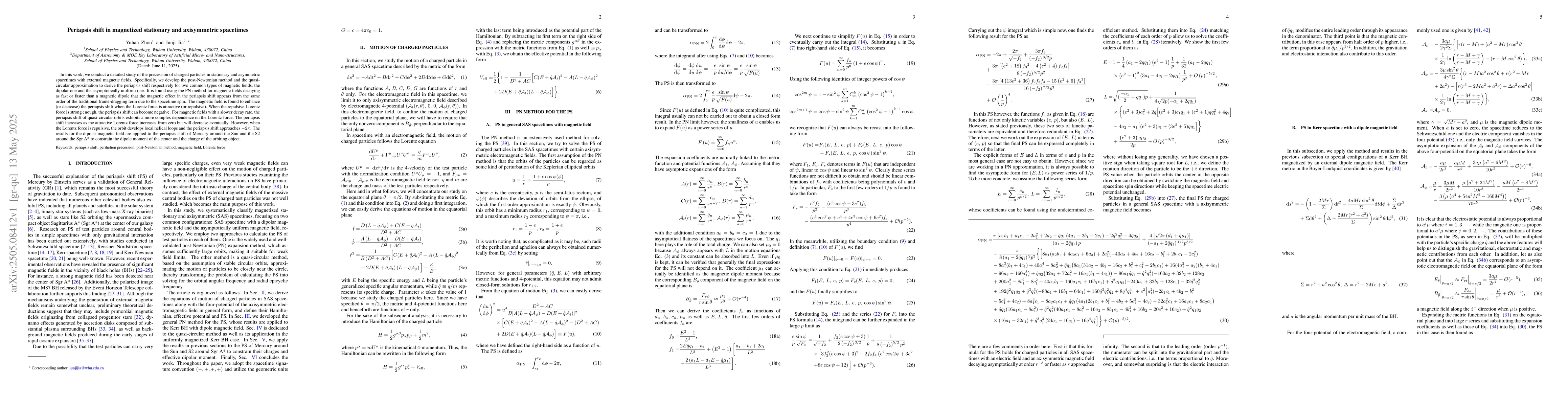 Researchers studied how strong magnetic fields affect charged particles in space, finding that they can cause periapsis shifts that either increase or decrease depending on the field's strength and direction.