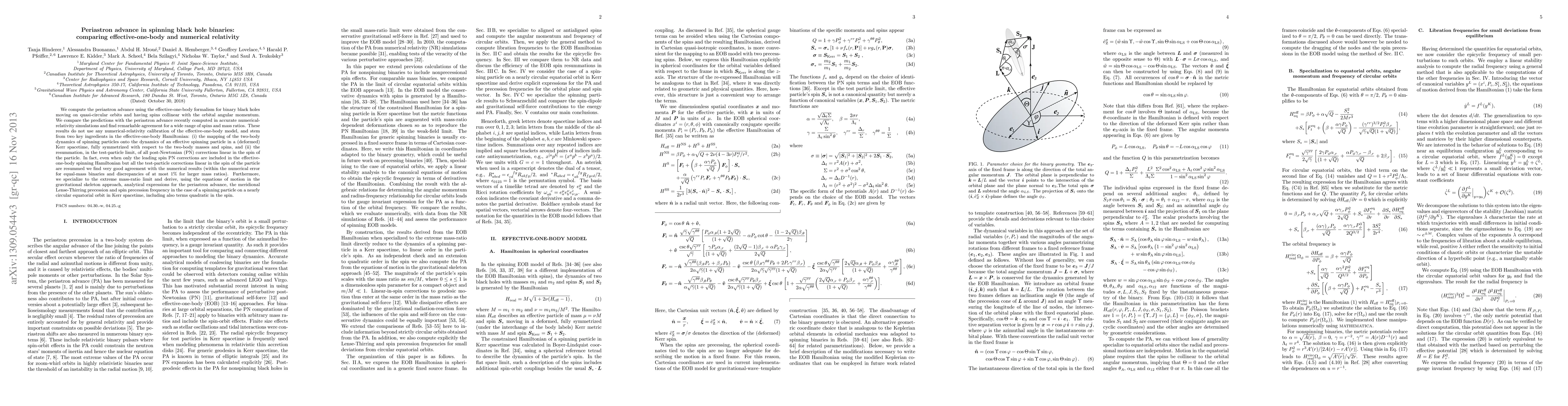 This paper compares periastron advance predictions from the effective-one-body formalism with those from numerical relativity simulations for spinning black hole binaries, finding remarkable agreement across a wide range of spins and mass ratios. The agreement is attributed to the effective-one-body model's mapping of spinning particles to an effective spinning particle in a Kerr spacetime and its resummation of post-Newtonian corrections.