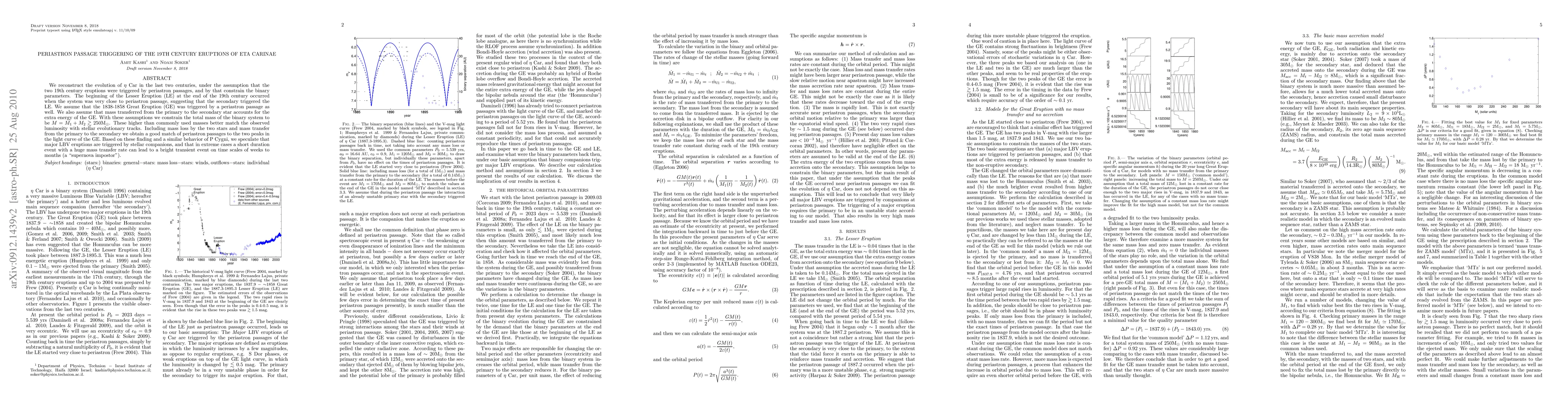 This paper reconstructs Eta Carinae's evolution over the last two centuries, attributing its 19th century eruptions to periastron passages and constraining binary parameters. The findings suggest that the secondary star triggered the Lesser Eruption, while the Great Eruption was also periastron-induced, with mass transfer from the primary explaining the extra energy.