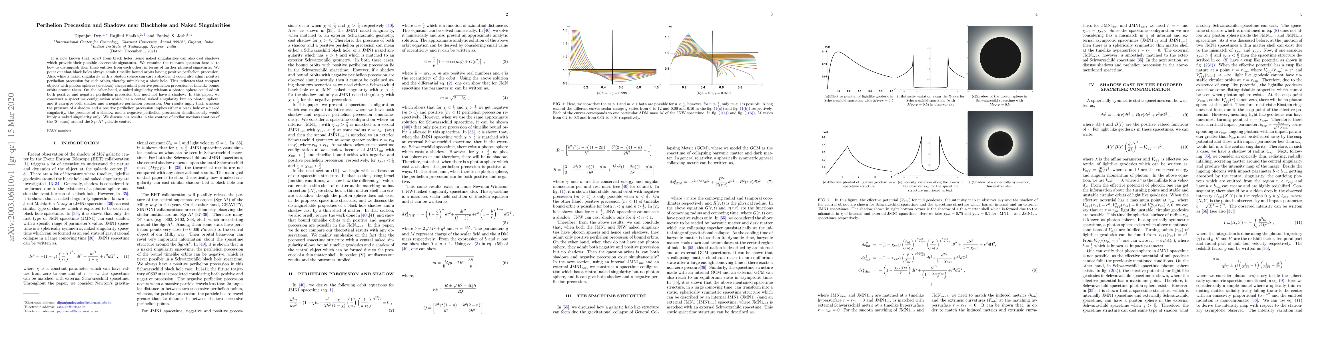 This paper investigates how to distinguish black holes from naked singularities based on their observable signatures, particularly focusing on perihelion precession and shadows. It concludes that while both black holes and certain naked singularities can exhibit positive perihelion precession and cast shadows, a naked singularity without a photon sphere can show negative perihelion precession, distinguishing it from black holes.
