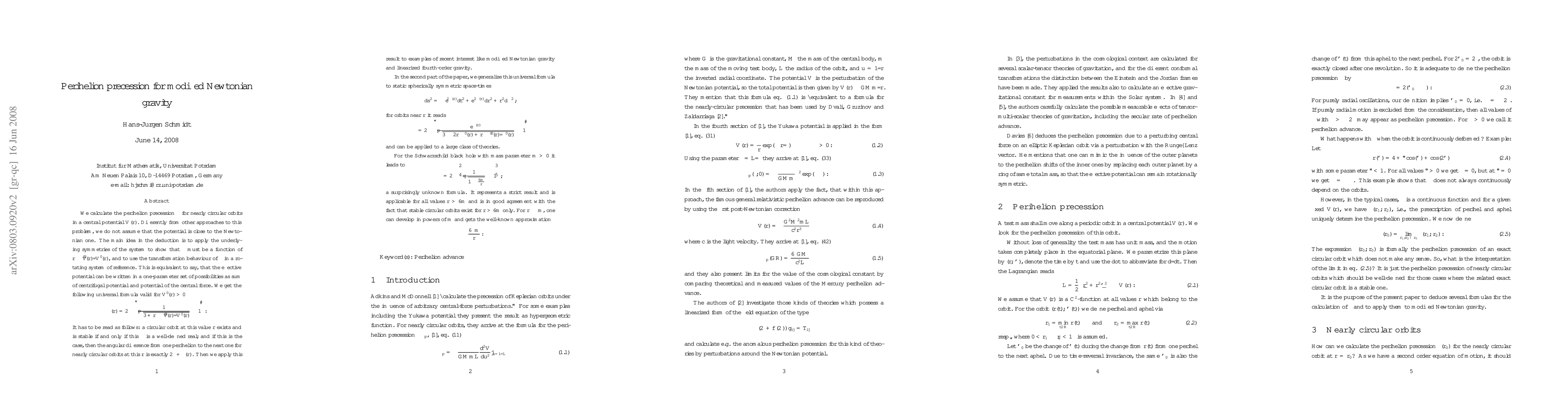 Researchers develop a universal formula for perihelion precession in modified Newtonian gravity, finding that stable circular orbits exist if the angular difference from one perihelion to the next is a well-defined real number.