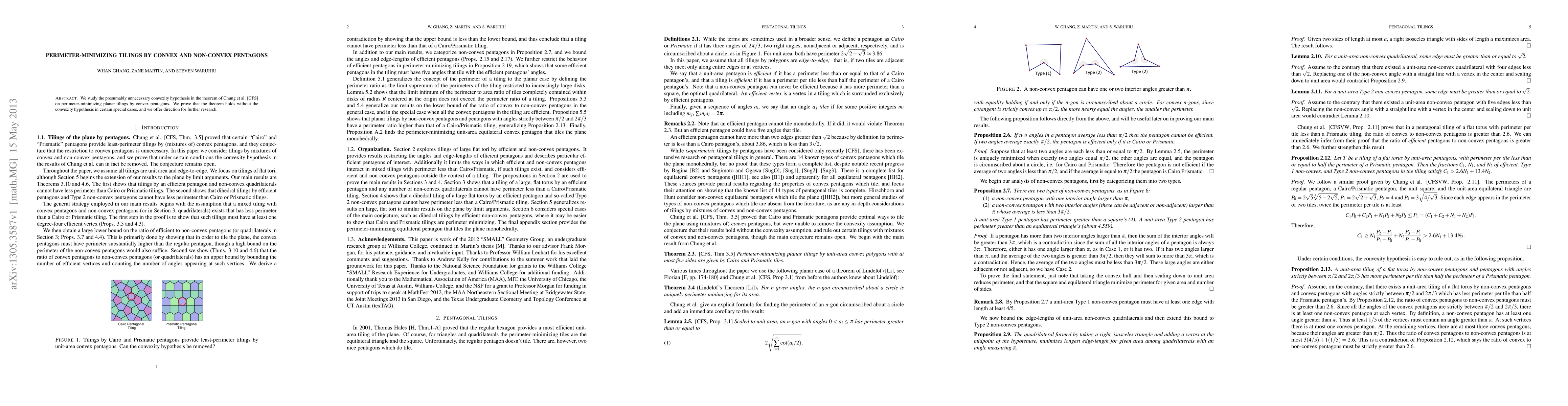 This paper investigates the necessity of convexity in Chung et al.'s theorem on perimeter-minimizing planar tilings by pentagons, demonstrating that the theorem holds without the convexity assumption in specific scenarios, and suggests avenues for further study.