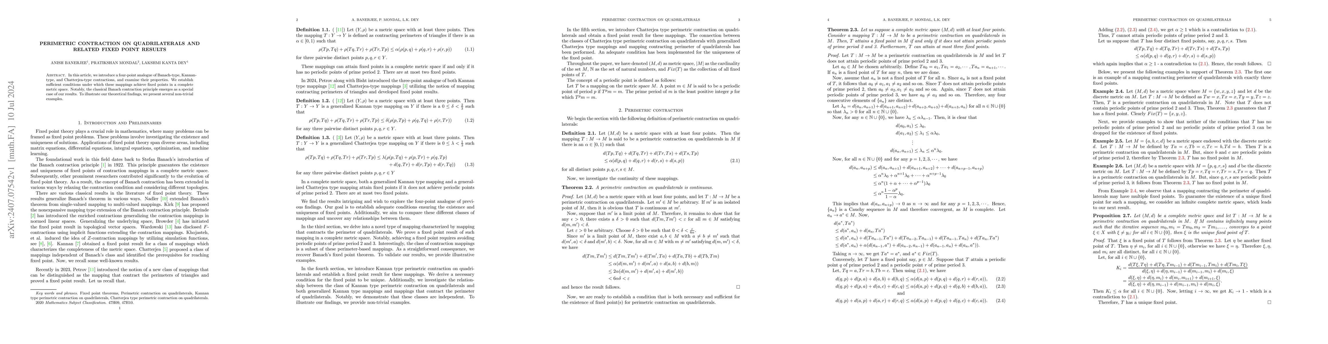 In this article, we introduce a four-point analogue of Banach-type, Kannan-type, and Chatterjea-type contractions, and examine their properties. We establish sufficient conditions under which these mappings achieve fixed points in a complete metric space. Notably, the classical Banach contraction principle emerges as a special case of our results. To illustrate our theoretical findings, we present several non-trivial examples.