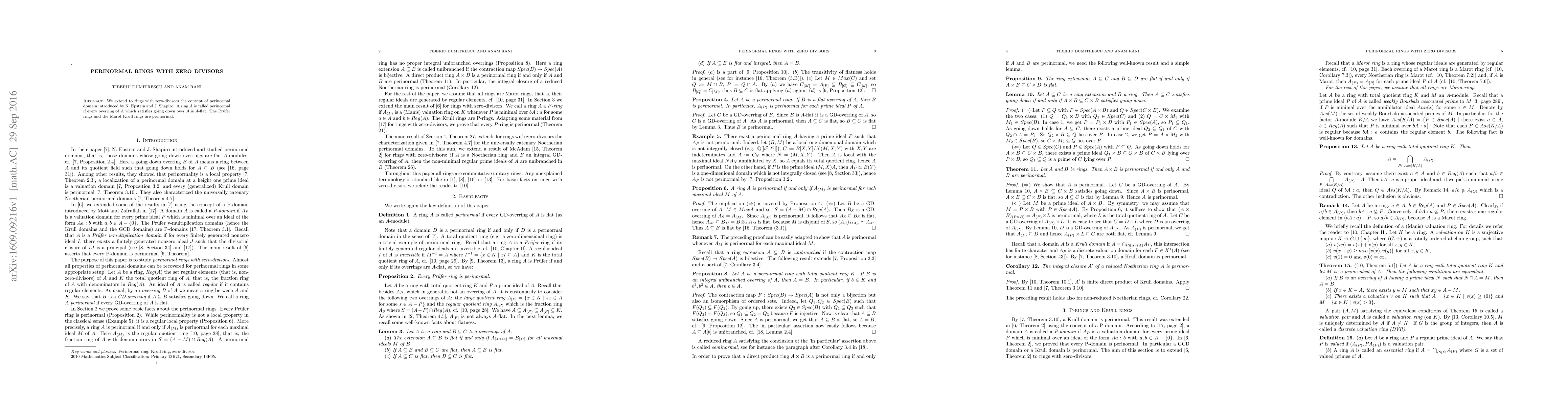 The paper extends the concept of perinormal domains to rings with zero-divisors, analyzing properties of such rings and their overrings.