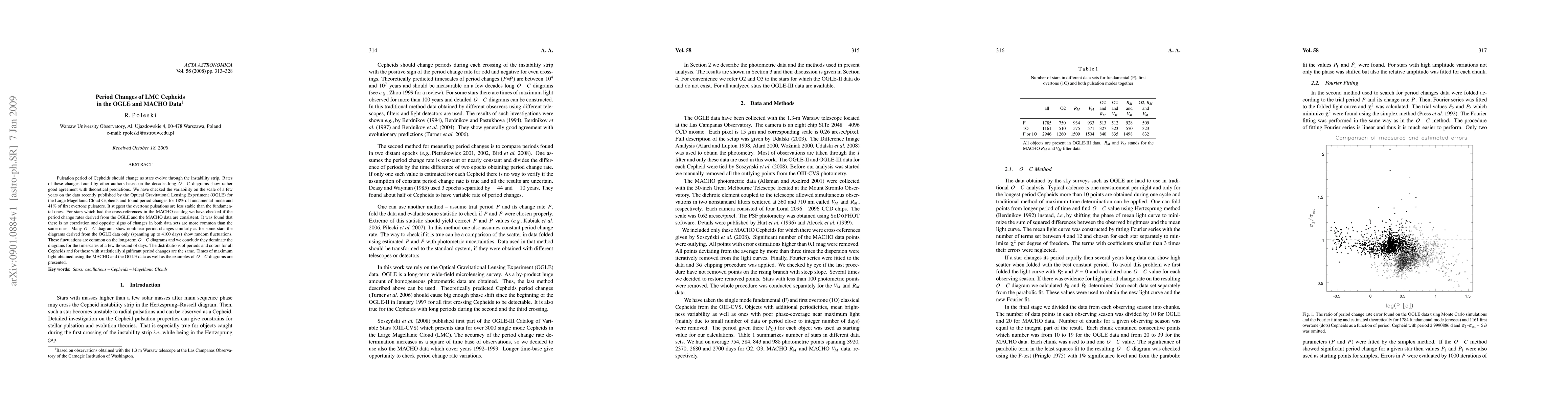 Pulsation period of Cepheids should change as stars evolve through the instability strip. Rates of these changes found by other authors based on the decades-long O-C diagrams show rather good agreement with theoretical predictions. We have checked the variability on the scale of a few years on the data recently published by the Optical Gravitational Lensing Experiment (OGLE) for the Large Magellanic Cloud Cepheids and found period changes for 18% of fundamental mode and 41% of first overtone pulsators. It suggest the overtone pulsations are less stable than the fundamental ones. For stars which had the cross-references in the MACHO catalog we have checked if the period change rates derived from the OGLE and the MACHO data are consistent. It was found that there is no correlation and opposite signs of changes in both data sets are more common than the same ones. Many O-C diagrams show nonlinear period changes similarly as for some stars the diagrams derived from the OGLE data only (spanning up to 4100 days) show random fluctuations. These fluctuations are common on the long-term O-C diagrams and we conclude they dominate the diagrams for the timescales of a few thousand of days. The distributions of periods and colors for all Cepheids and for those with statistically significant period changes are the same. Times of maximum light obtained using the MACHO and the OGLE data as well as the examples of O-C diagrams are presented.