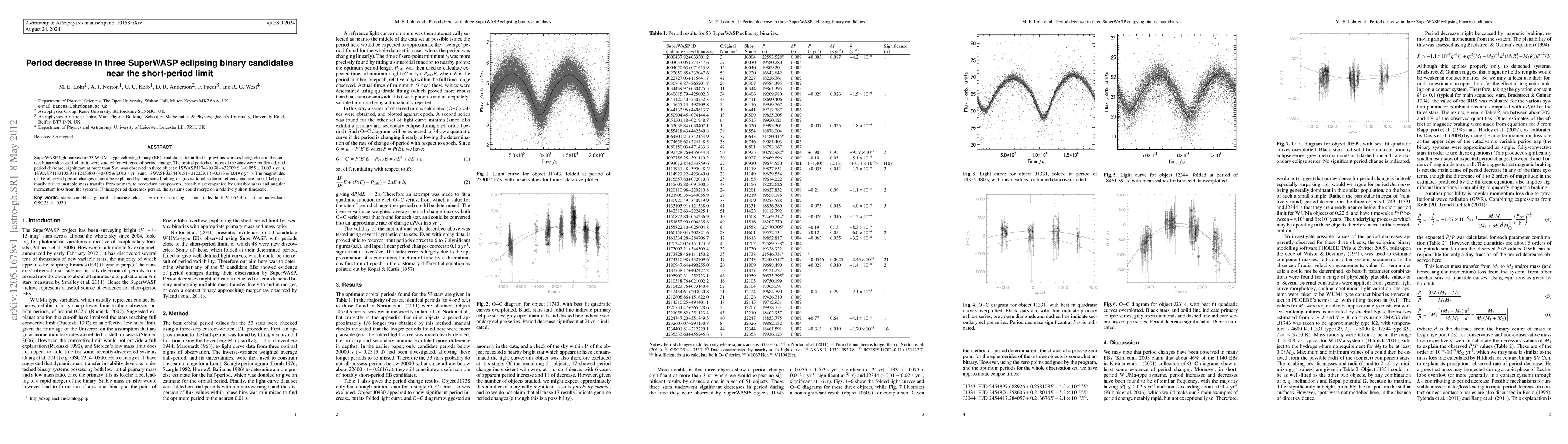 This study confirms period decrease in three SuperWASP eclipsing binary candidates near the short-period limit, with significant changes observed in the orbital periods of 1SWASP J174310.98+432709.6, 1SWASP J133105.91+121538.0, and 1SWASP J234401.81-212229.1. These changes are likely due to unstable mass transfer rather than magnetic braking or gravitational radiation.
