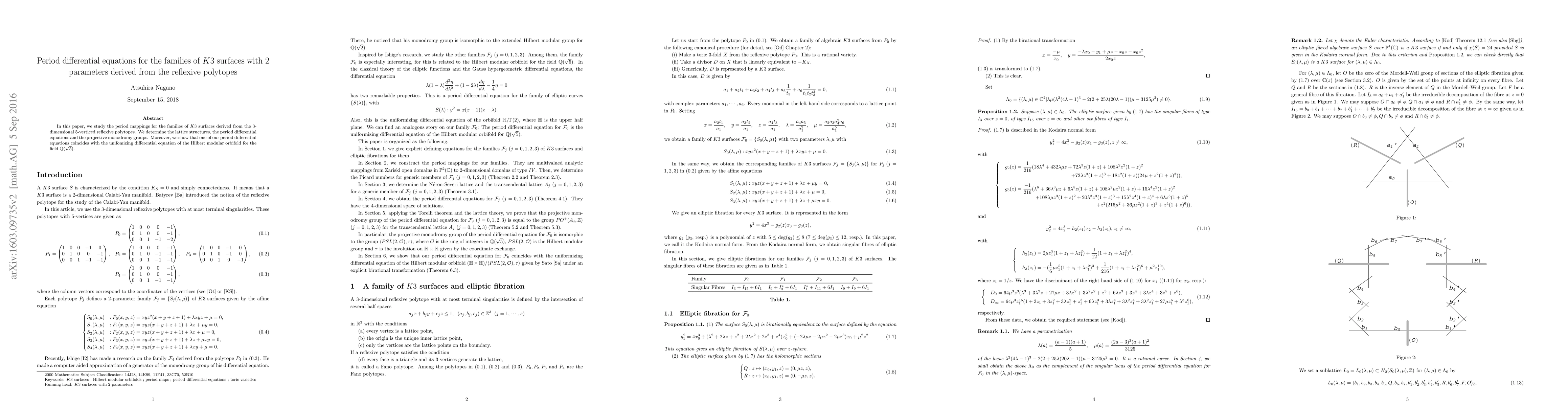 This paper investigates period mappings for $K3$ surfaces linked to $3$-dimensional, 5-vertex reflexive polytopes, determining their lattice structures, period differential equations, and projective monodromy groups. It finds a period differential equation that matches the uniformizing differential equation of the Hilbert modular orbifold for $\mathbb{Q}(\sqrt{5})$.