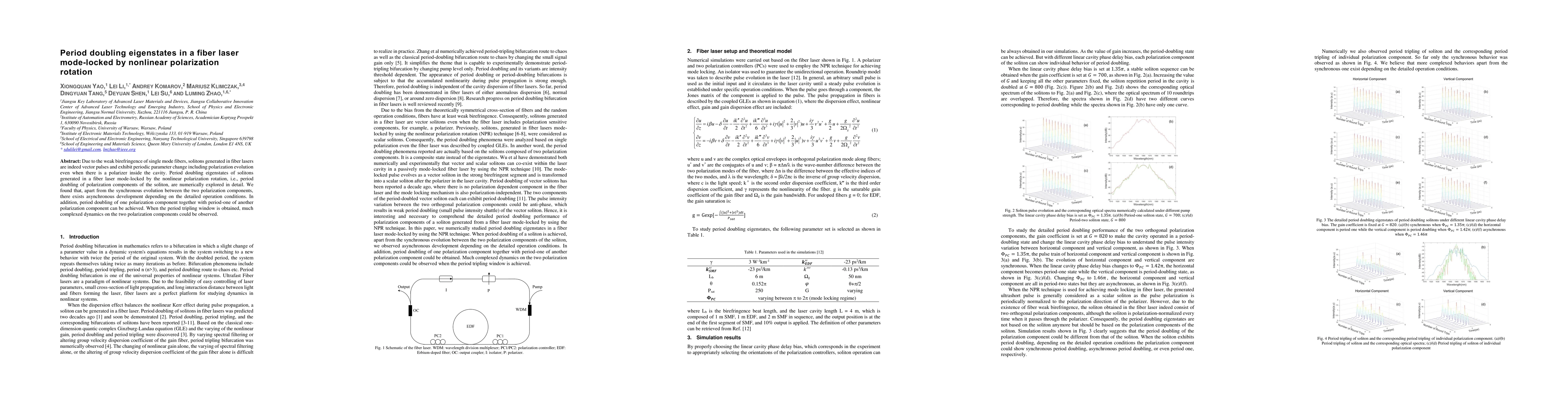 This research explores the period doubling eigenstates in solitons from a fiber laser mode-locked by nonlinear polarization rotation, revealing complex asynchronous dynamics in polarization components under different operational conditions, including instances of period tripling behavior.
