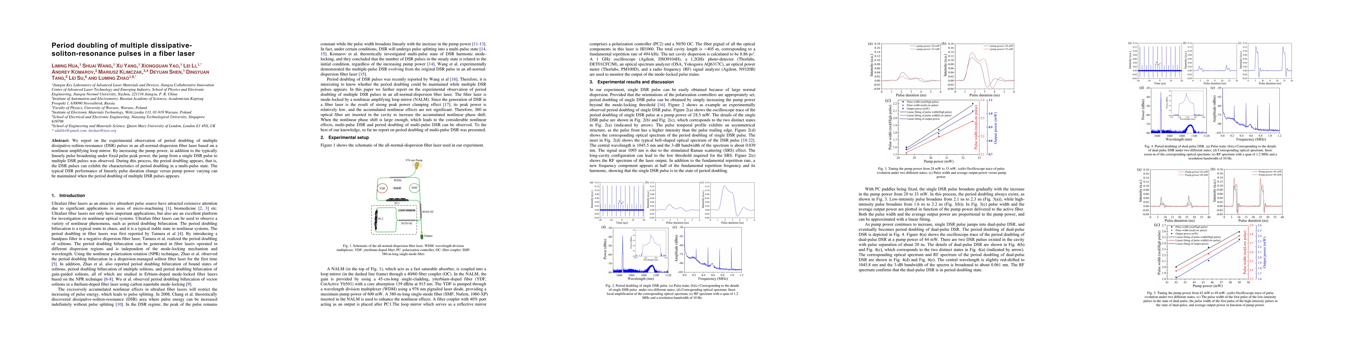 This paper reports on the experimental observation of period doubling in multiple dissipative-soliton-resonance pulses in an all-normal-dispersion fiber laser with a nonlinear amplifying loop mirror. As pump power increases, the system transitions from a single DSR pulse to multiple DSR pulses, exhibiting period doubling characteristics.