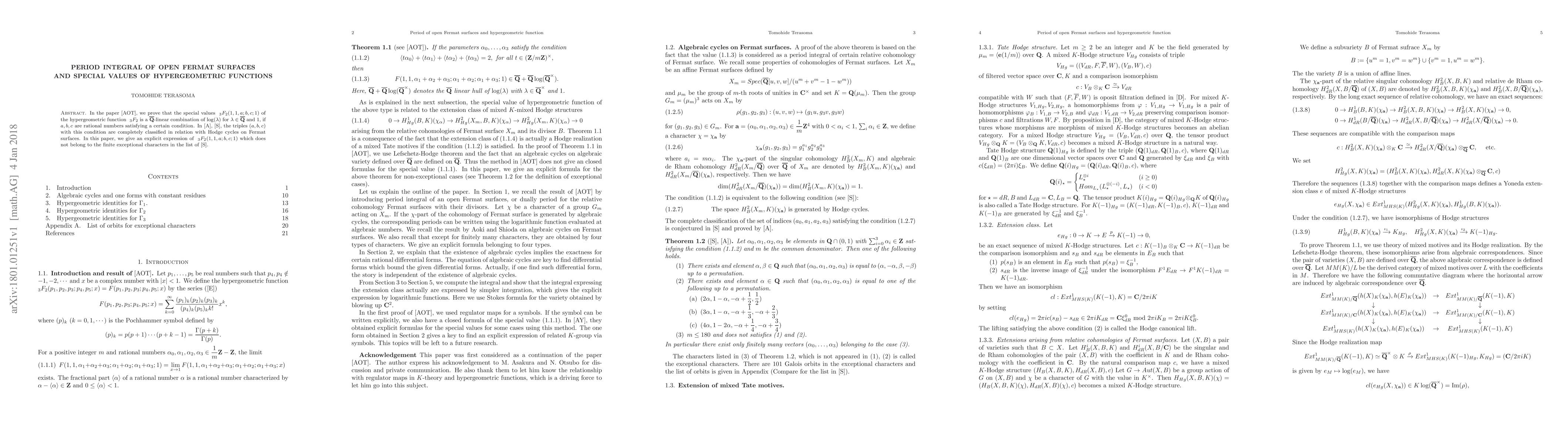 In the previous paper by Asakura-Otsubo-Terasoma, we prove that the special values of the hypergeometric function 3F2 at 1 are linear combinations of logarithms of algebraic numbers and 1 over algebraic numbers, if exponents are rational numbers satisfying a certain arithmetic condition. Aoki and Shioda completely classified these sets of rational numbers satisfying this condition in connection with Hodge cycles on Fermat surfaces. In this paper, we give an explicit expression of special values of hypergoemetricy 3F2 which does not belong to exceptional characters.