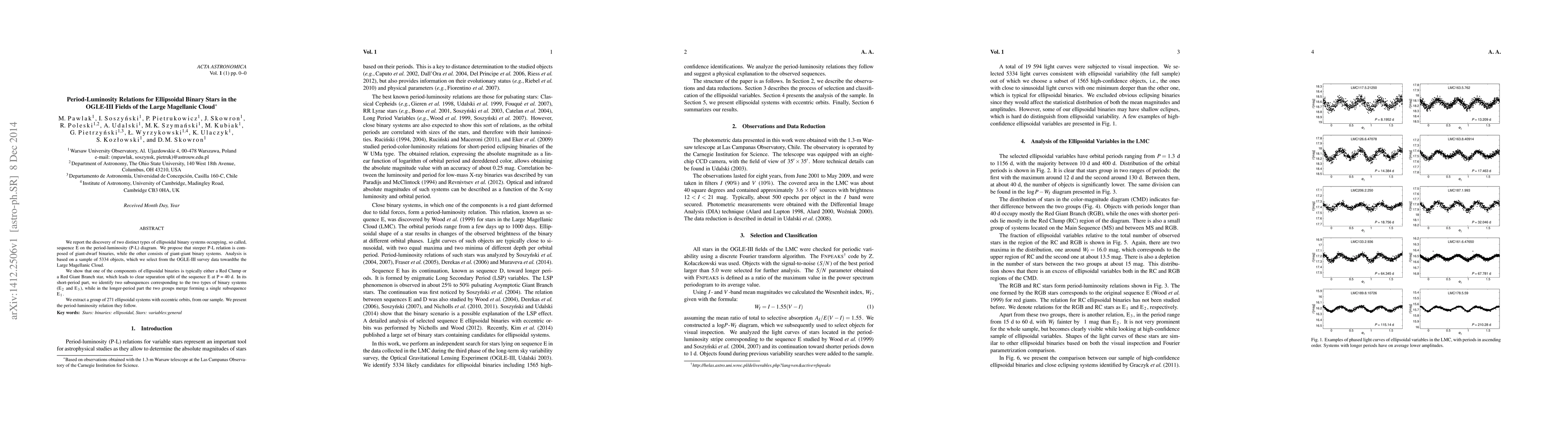This paper investigates ellipsoidal binary systems in the Large Magellanic Cloud, identifying two distinct types based on their period-luminosity relations. The study reveals that giant-dwarf binaries and giant-giant binaries occupy separate regions on the P-L diagram, with a clear separation at P = 40 days.