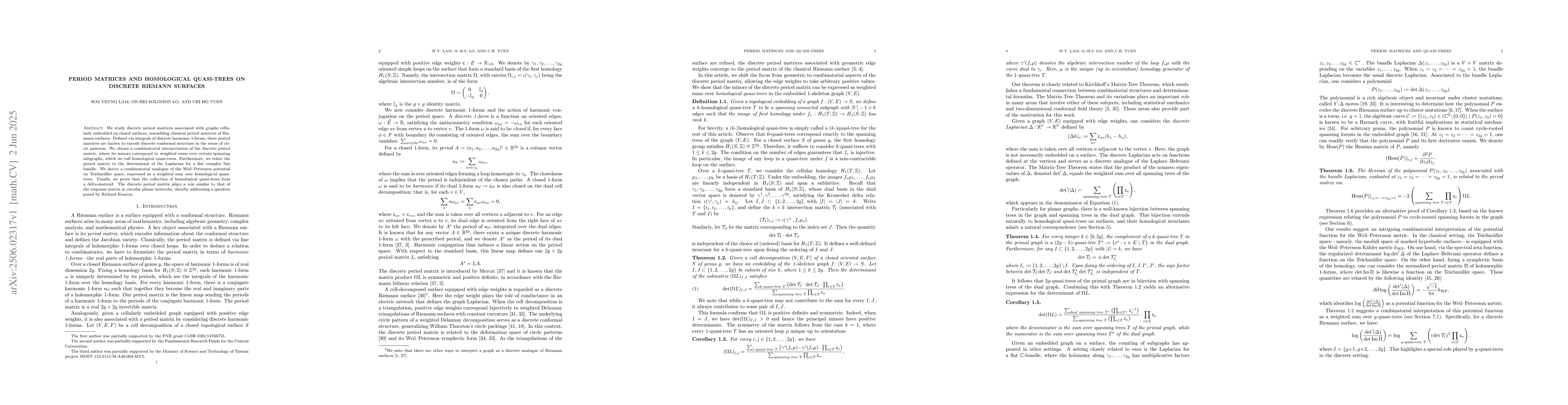 Researchers study discrete period matrices associated with graphs on closed surfaces, finding a combinatorial interpretation that relates to homological quasi-trees, which encode the surface's conformal structure.