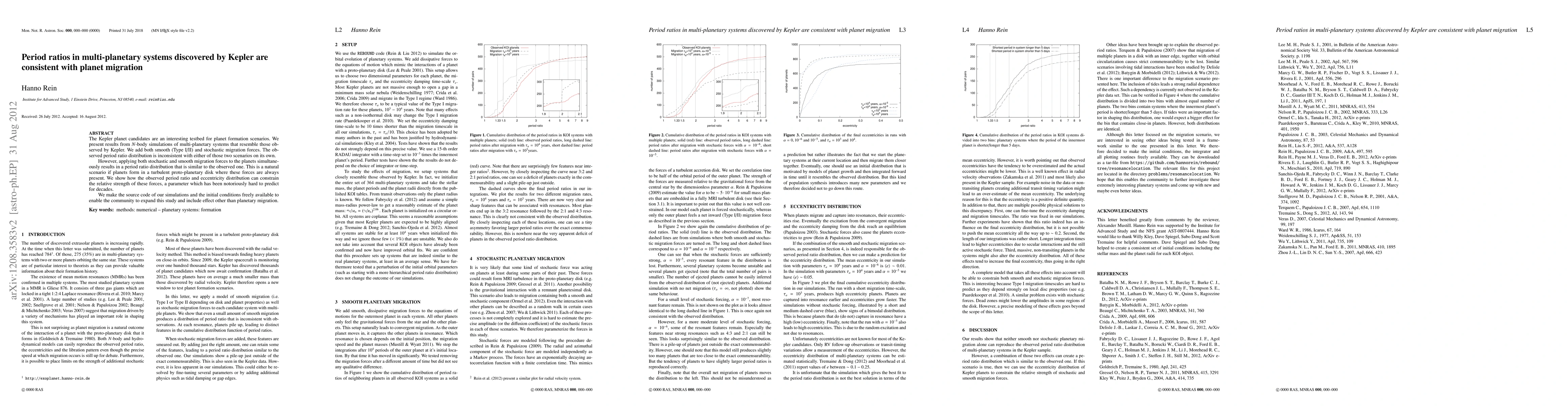 This research demonstrates that the period ratios in multi-planetary systems observed by Kepler align with planet migration models incorporating both smooth and stochastic migration forces. The study's simulations show that combining these migration types can reproduce the observed period ratios, suggesting planets form in a turbulent proto-planetary disk.