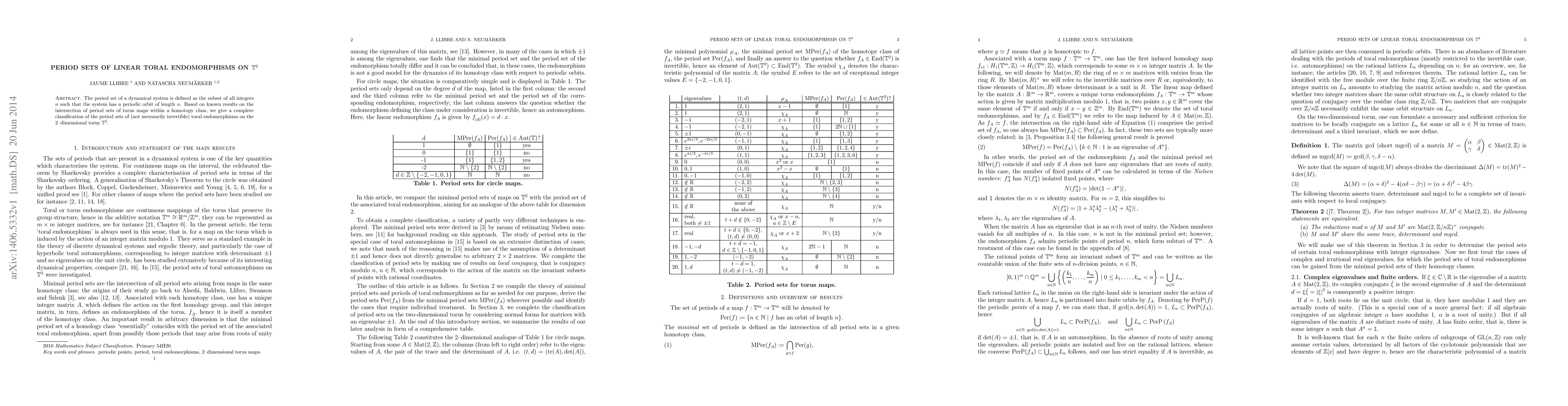 This paper classifies the period sets of linear toral endomorphisms on the 2-dimensional torus, identifying all integers corresponding to periodic orbits of varying lengths within such dynamical systems. The results leverage prior findings on intersections of period sets for torus maps within the same homotopy class.