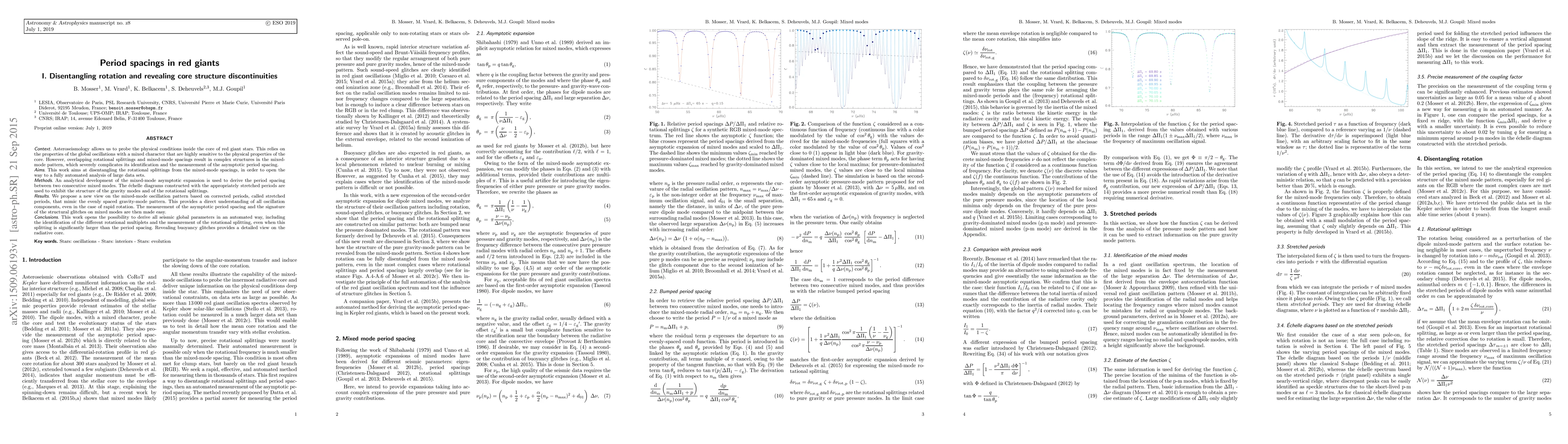 This paper develops a method to disentangle rotational splittings from mixed-mode spacings in red giant stars, facilitating automated analysis of large datasets. It introduces "stretched periods" to reveal core structure discontinuities, enabling precise measurement of asymptotic period spacing and identification of rotational multiplets.