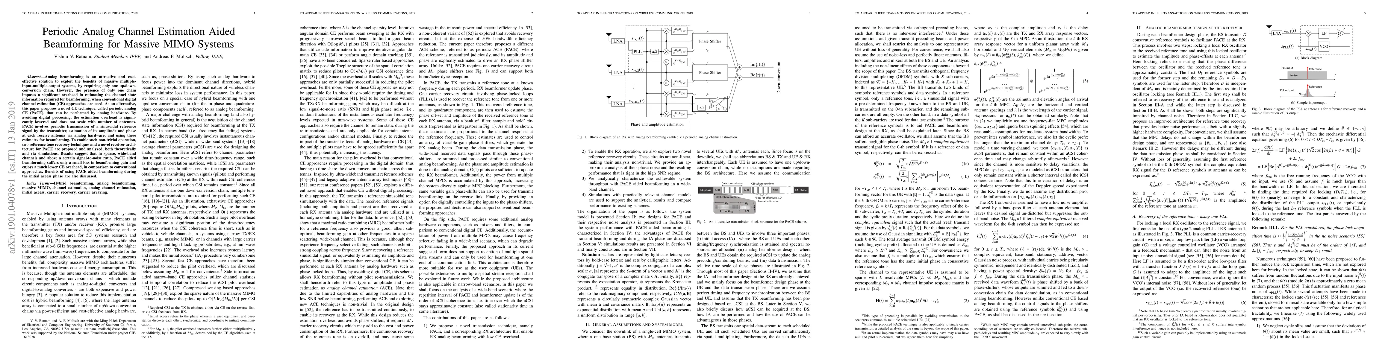 This paper proposes a novel periodic analog channel estimation (PACE) technique for massive MIMO systems to reduce channel estimation overhead. PACE uses analog hardware to estimate channel state information from periodic sinusoidal reference signals, resulting in lower overhead compared to conventional digital methods.