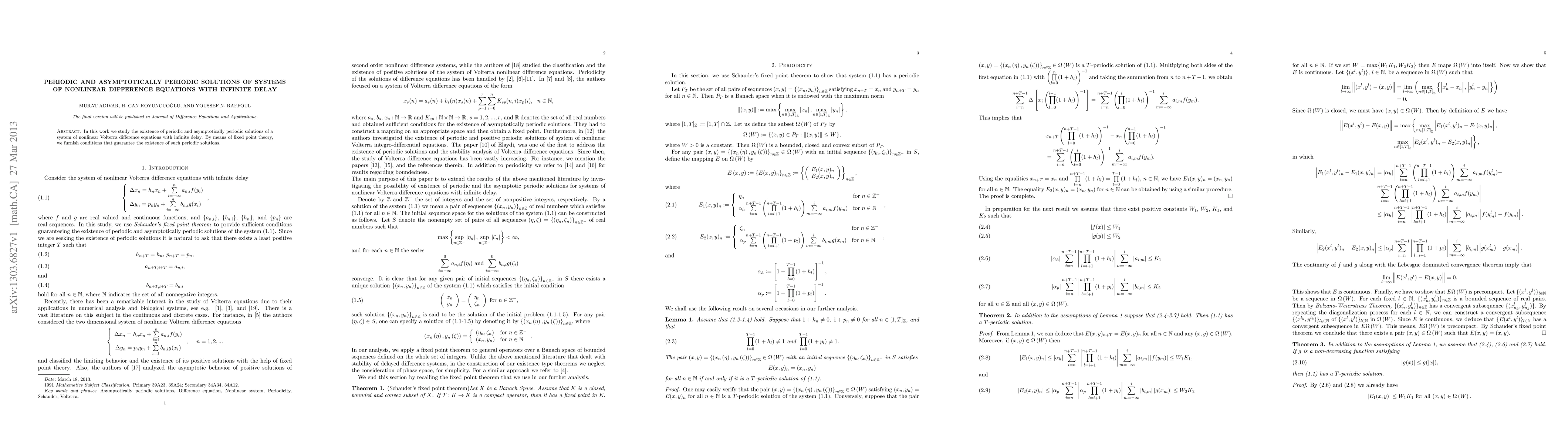 This paper investigates the existence of periodic and asymptotically periodic solutions for nonlinear Volterra difference equations with infinite delay. It employs fixed point theory to establish conditions ensuring the presence of these solutions.