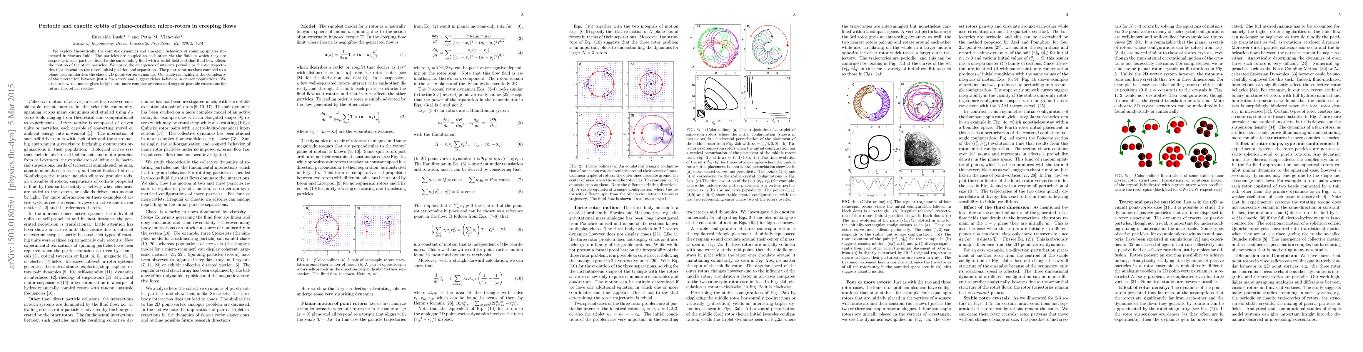 We explore theoretically the complex dynamics and emergent behaviors of spinning spheres immersed in viscous fluid. The particles are coupled to each-other via the fluid in which they are suspended: each particle disturbs the surrounding fluid with a rotlet field and that fluid flow affects the motion of the other particles. We notice the emergence of intricate periodic or chaotic trajectories that depend on the rotors initial position and separation. The point-rotor motions confined to a plane bear similarities the classic 2D point-vortex dynamics. Our analyses highlight the complexity of the interaction between just a few rotors and suggest richer behavior in denser populations. We discuss how the model gives insight into more complex systems and suggest possible extensions for future theoretical studies.