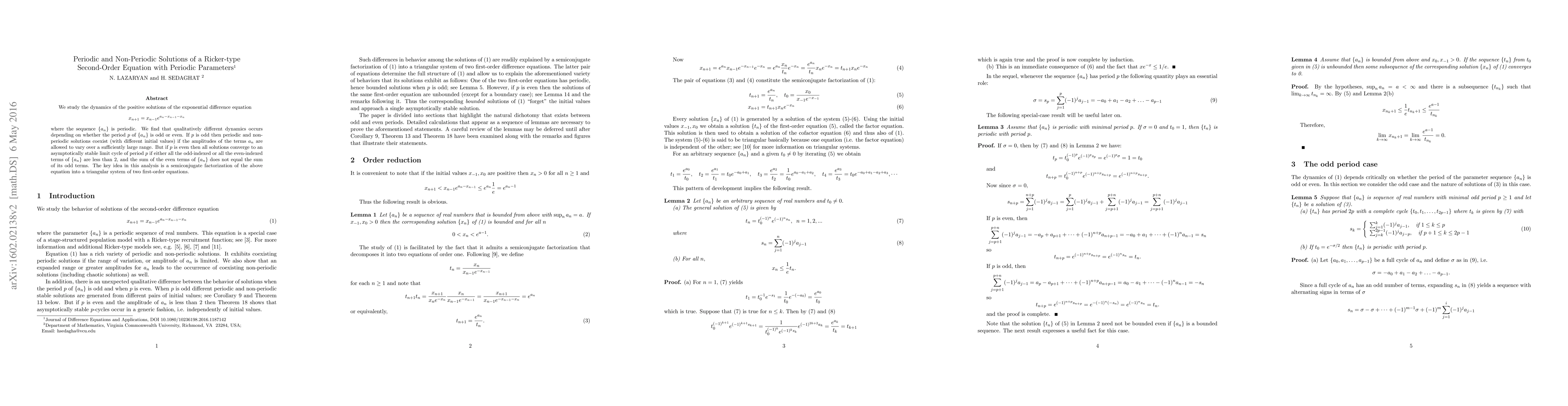 We study the dynamics of the positive solutions of a second-order, Ricker-type exponential difference equation with periodic parameters. We find that qualitatively different dynamics occur depending on whether the period p of the main parameter is odd or even. If p is odd then periodic and non-periodic solutions may coexist (with different initial values) if the amplitude of the periodic parameter is allowed to vary over a sufficiently large range. But if p is even then all solutions converge to an asymptotically stable limit cycle of period p if either all the odd-indexed or all the even-indexed terms of the periodic parameter are less than 2, and the sum of the even terms does not equal the sum of the odd terms. The key idea in our analysis is a semiconjugate factorization of the above equation into a triangular system of two first-order equations.