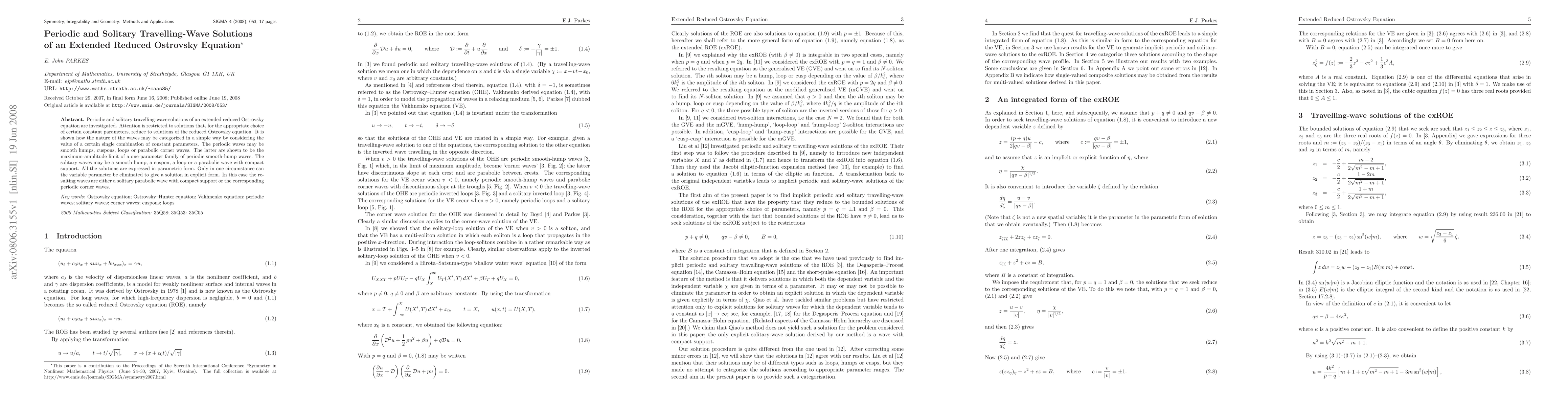 Periodic and solitary travelling-wave solutions of an extended reduced Ostrovsky equation are investigated. Attention is restricted to solutions that, for the appropriate choice of certain constant parameters, reduce to solutions of the reduced Ostrovsky equation. It is shown how the nature of the waves may be categorized in a simple way by considering the value of a certain single combination of constant parameters. The periodic waves may be smooth humps, cuspons, loops or parabolic corner waves. The latter are shown to be the maximum-amplitude limit of a one-parameter family of periodic smooth-hump waves. The solitary waves may be a smooth hump, a cuspon, a loop or a parabolic wave with compact support. All the solutions are expressed in parametric form. Only in one circumstance can the variable parameter be eliminated to give a solution in explicit form. In this case the resulting waves are either a solitary parabolic wave with compact support or the corresponding periodic corner waves.