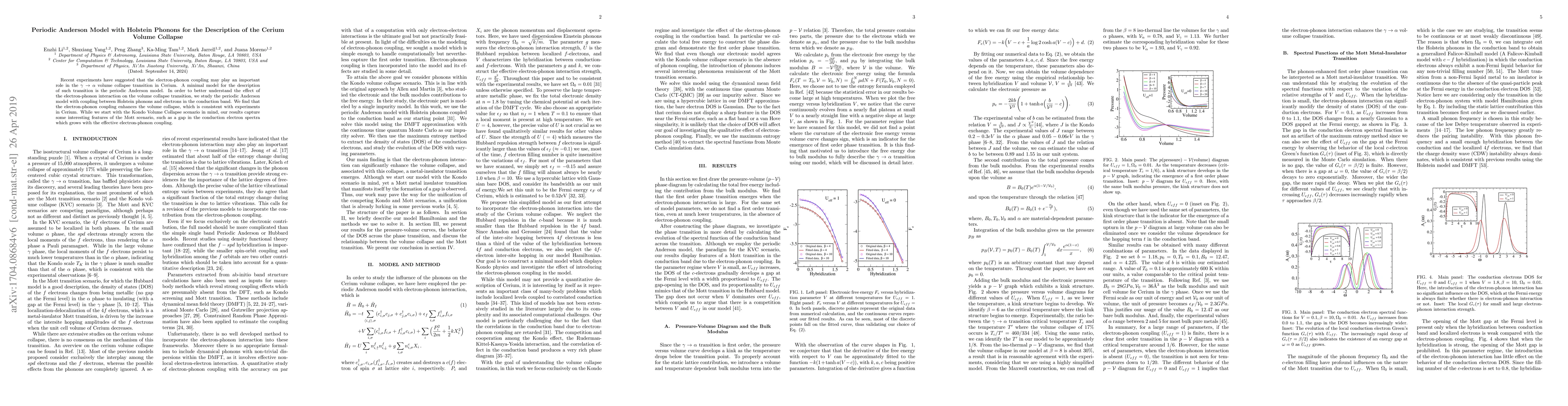 This research provides insights into the role of electron-phonon coupling in the volume collapse transition of Cerium, supporting recent experimental findings and revealing interesting features of both Kondo and Mott scenarios.