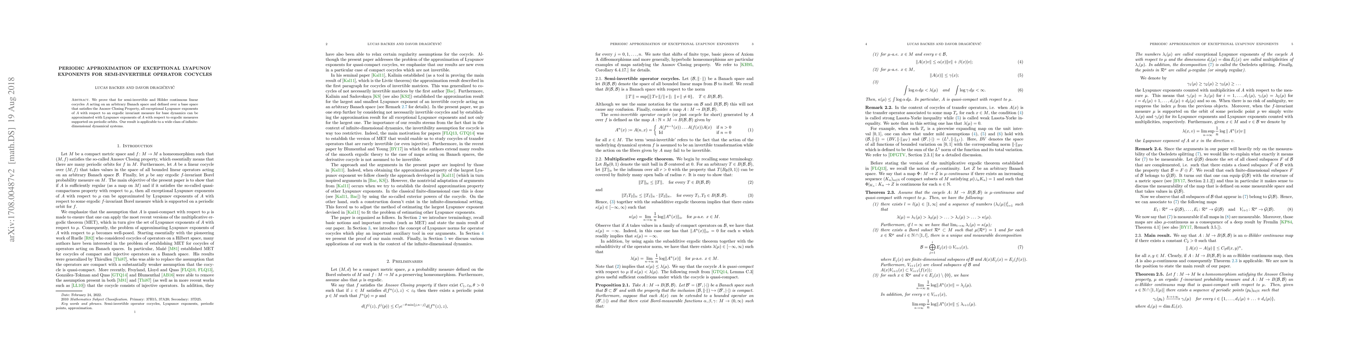 This paper demonstrates that exceptional Lyapunov exponents for semi-invertible linear cocycles on Banach spaces with Anosov dynamics can be approximated by Lyapunov exponents associated with ergodic measures on periodic orbits. This result extends to various infinite-dimensional dynamical systems.