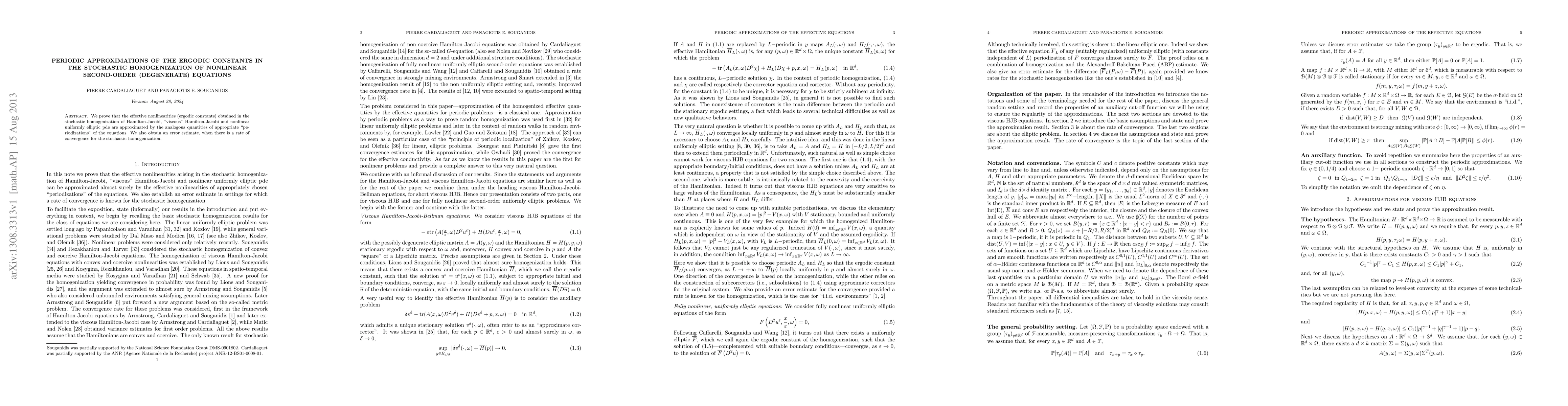 We prove that the effective nonlinearities (ergodic constants) obtained in the stochastic homogenization of Hamilton-Jacobi, "viscous" Hamilton-Jacobi and nonlinear uniformly elliptic pde are approximated by the analogous quantities of appropriate "periodizations" of the equations. We also obtain an error estimate, when there is a rate of convergence for the stochastic homogenization.