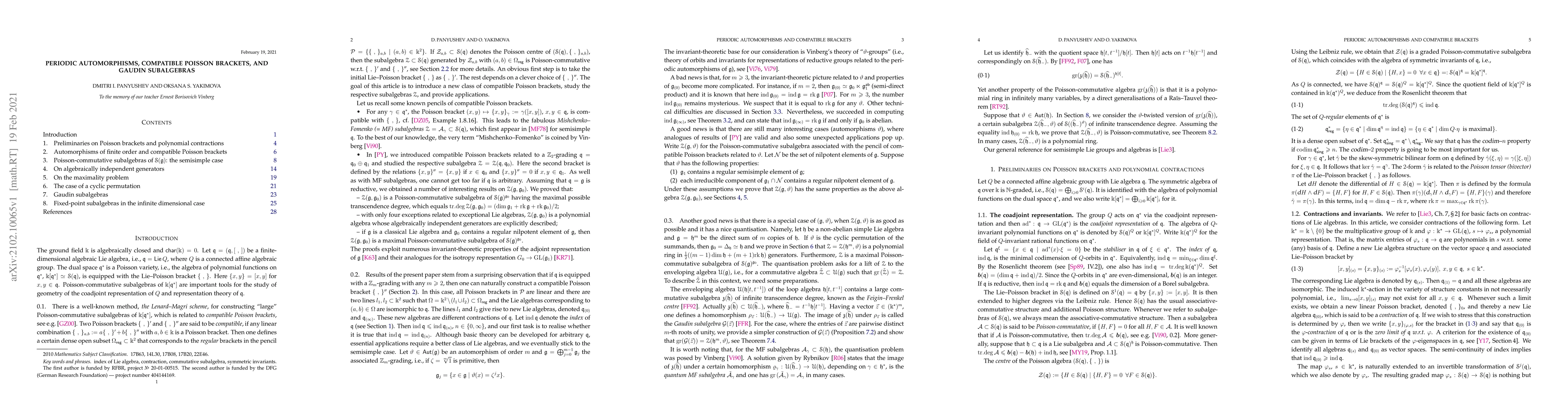 This research explores the connection between periodic automorphisms of Lie algebras and compatible Poisson brackets, showing how finite-order automorphisms generate additional Poisson structures. For semisimple Lie algebras, it proves the maximality of certain polynomial Poisson-commutative subalgebras and quantizes them using Gaudin subalgebras.