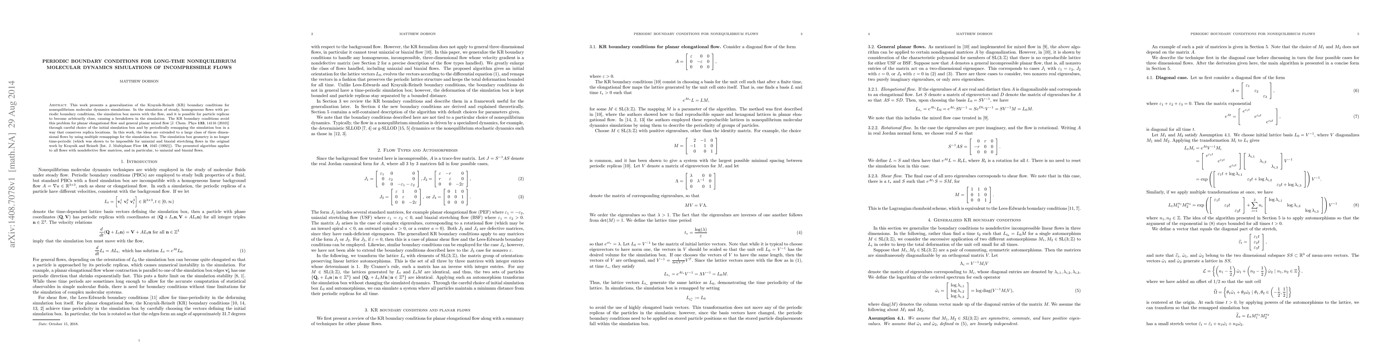 This paper generalizes Kraynik-Reinelt boundary conditions for nonequilibrium molecular dynamics simulations, extending them to three-dimensional incompressible flows to avoid particle replicas becoming too close. The new algorithm applies to all flows with nondefective flow matrices, ensuring stable long-time simulations.