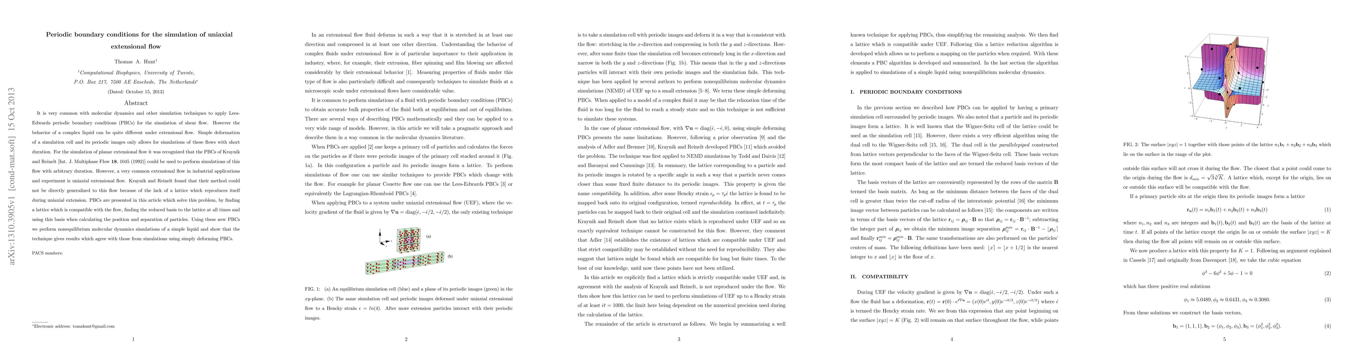 This paper introduces novel periodic boundary conditions (PBCs) for simulating uniaxial extensional flow in molecular dynamics simulations. The proposed PBCs address the limitations of existing methods by finding a compatible lattice and using a reduced basis for particle calculations, enabling long-term simulations and results consistent with traditional deformation methods.