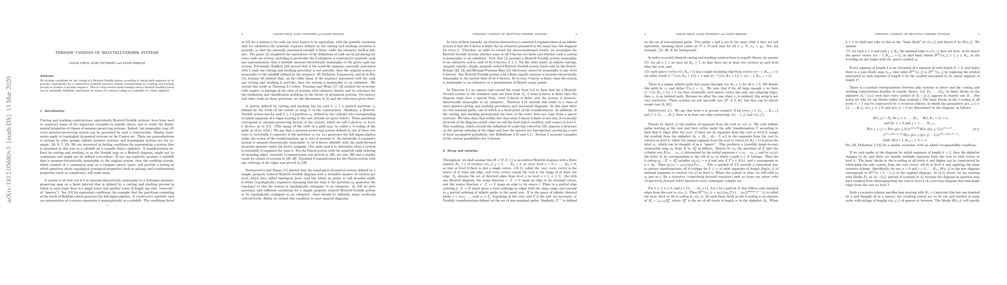 We develop conditions for the coding of a Bratteli-Vershik system according to initial path segments to be periodic, equivalently for a constructive symbolic recursive scheme corresponding to a cutting and stacking process to produce a periodic sequence. This is a step toward understanding when a Bratteli-Vershik system can be essentially faithfully represented by means of a natural coding as a subshift on a finite alphabet.