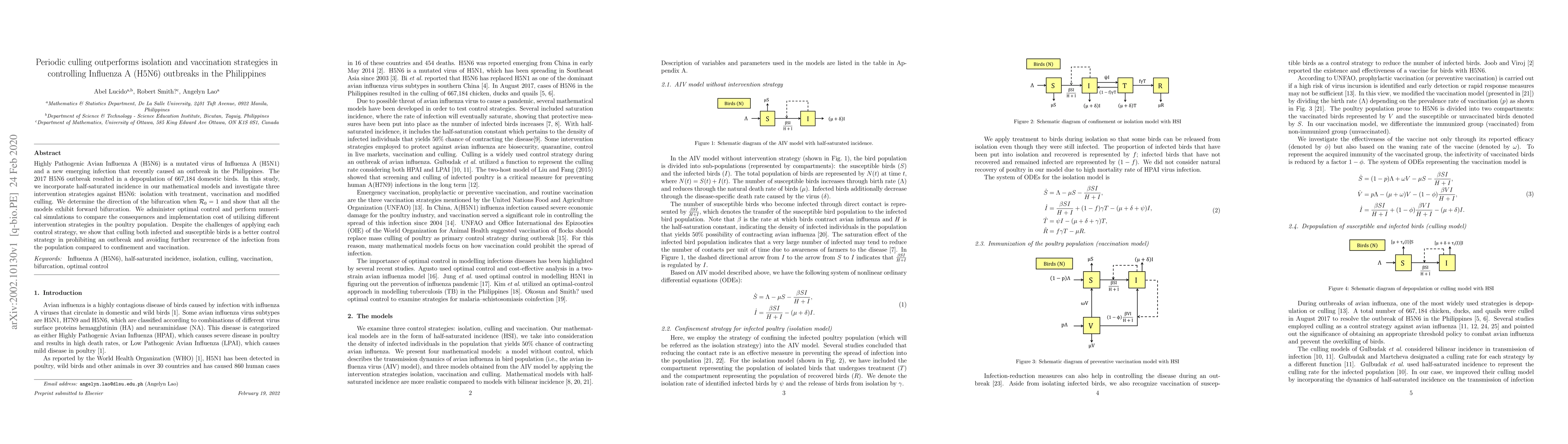 This study finds that periodic culling of both infected and susceptible birds is more effective than isolation or vaccination in controlling outbreaks of the H5N6 avian influenza virus in the Philippines, according to mathematical models and optimal control simulations. Despite the challenges, culling outperforms other strategies in preventing outbreaks and recurrence.
