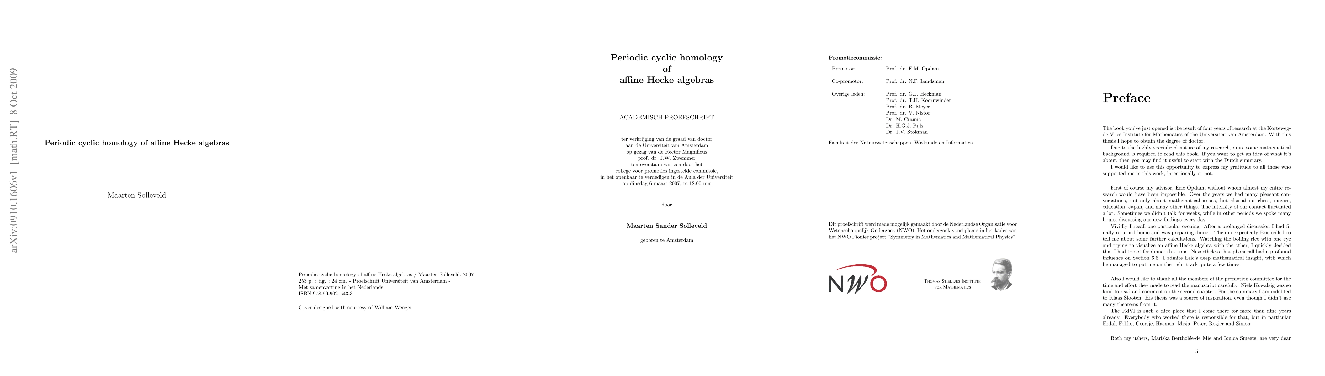 This PhD thesis explores the periodic cyclic homology of affine Hecke algebras, delving into K-theory, cyclic type homology, affine Hecke algebras, and reductive p-adic groups, culminating in specific examples and calculations. The study aims to understand the algebraic structures and their deformations in a detailed manner.