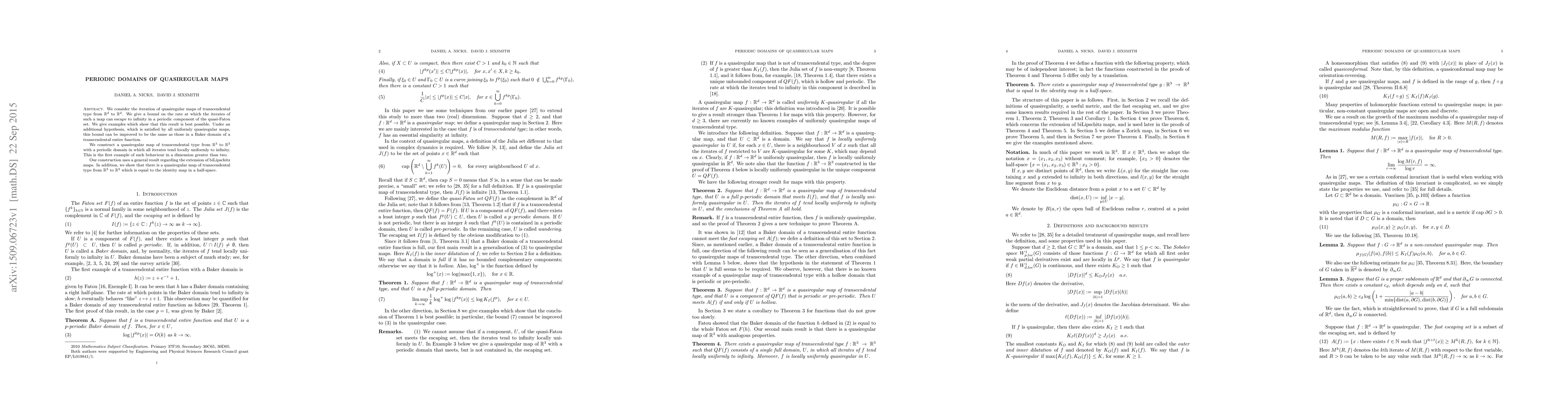 We consider the iteration of quasiregular maps of transcendental type from $\mathbb{R}^d$ to $\mathbb{R}^d$. We give a bound on the rate at which the iterates of such a map can escape to infinity in a periodic component of the quasi-Fatou set. We give examples which show that this result is best possible. Under an additional hypothesis, which is satisfied by all uniformly quasiregular maps, this bound can be improved to be the same as those in a Baker domain of a transcendental entire function. We construct a quasiregular map of transcendental type from $\mathbb{R}^3$ to $\mathbb{R}^3$ with a periodic domain in which all iterates tend locally uniformly to infinity. This is the first example of such behaviour in a dimension greater than two. Our construction uses a general result regarding the extension of biLipschitz maps. In addition, we show that there is a quasiregular map of transcendental type from $\mathbb{R}^3$ to $\mathbb{R}^3$ which is equal to the identity map in a half-space.