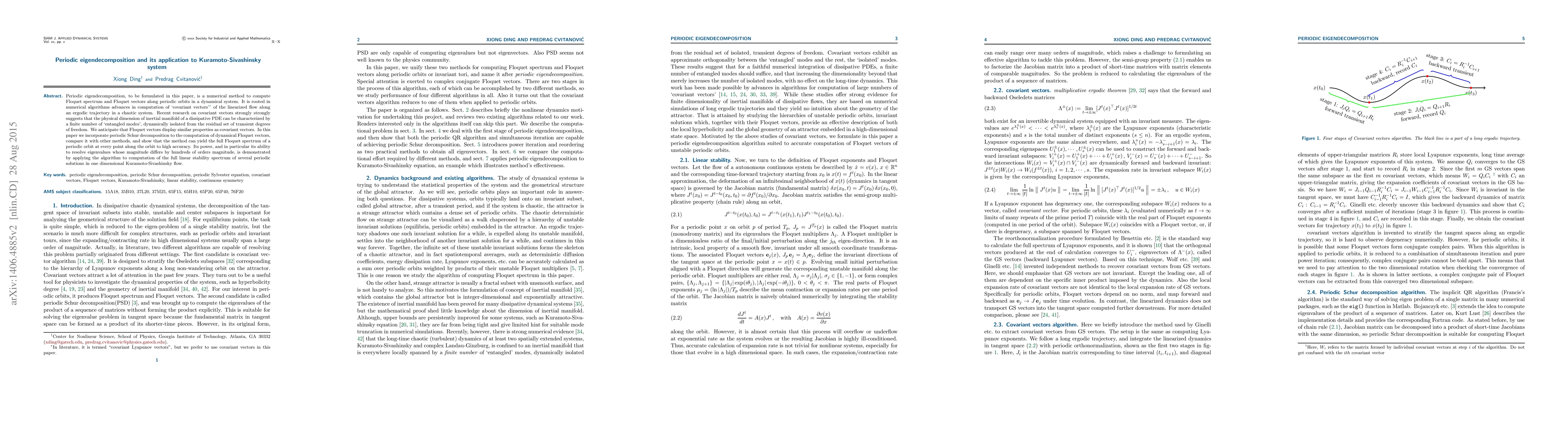 Periodic eigendecomposition, to be formulated in this paper, is a numerical method to compute Floquet spectrum and Floquet vectors along periodic orbits in a dynamical system. It is rooted in numerical algorithms advances in computation of 'covariant vectors' of the linearized flow along an ergodic trajectory in a chaotic system. Recent research on covariant vectors strongly strongly suggests that the physical dimension of inertial manifold of a dissipative PDE can be characterized by a finite number of 'entangled modes', dynamically isolated from the residual set of transient degrees of freedom. We anticipate that Floquet vectors display similar properties as covariant vectors. In this paper we incorporate periodic Schur decomposition to the computation of dynamical Floquet vectors, compare it with other methods, and show that the method can yield the full Floquet spectrum of a periodic orbit at every point along the orbit to high accuracy. Its power, and in particular its ability to resolve eigenvalues whose magnitude differs by hundreds of orders magnitude, is demonstrated by applying the algorithm to computation of the full linear stability spectrum of several periodic solutions in one dimensional Kuramoto-Sivashinsky flow.