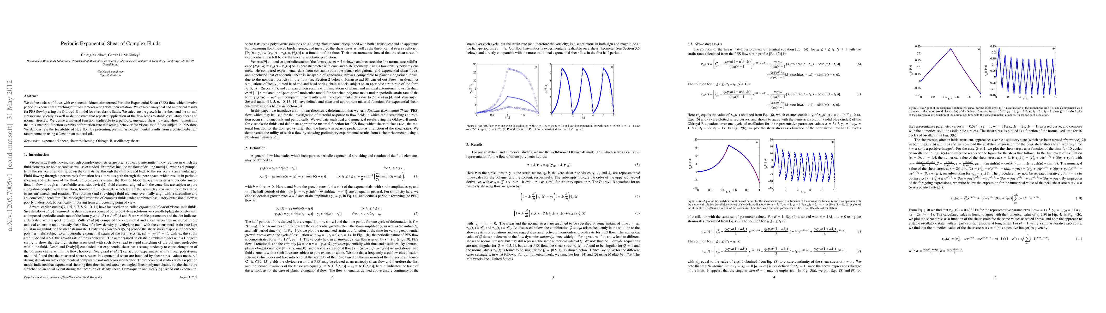 This paper introduces Periodic Exponential Shear (PES) flow, a novel class of periodic flows involving exponential stretching and rotation of fluid elements, and applies it to viscoelastic fluids using the Oldroyd-B model. It demonstrates analytically and numerically that PES flow induces stable oscillatory shear and normal stresses, and shows experimentally with a Newtonian mineral oil that it can exhibit deformation-rate thickening behavior.