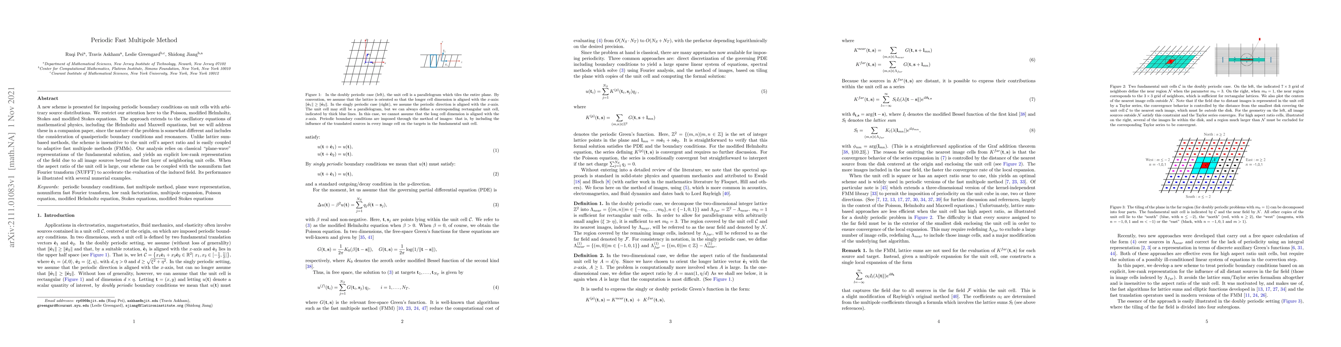 A new method for imposing periodic boundary conditions on unit cells with arbitrary source distributions is presented, offering improved accuracy and adaptability compared to existing lattice sum-based methods.