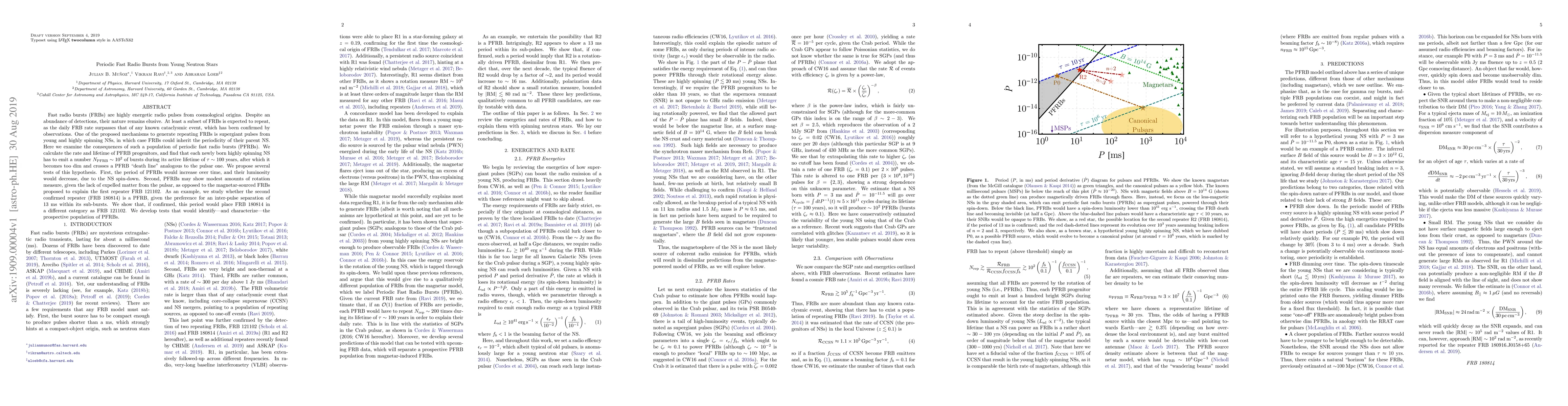 Fast radio bursts (FRBs) are highly energetic radio pulses from cosmological origins. Despite an abundance of detections, their nature remains elusive. At least a subset of FRBs is expected to repeat, as the daily FRB rate surpasses that of any known cataclysmic event, which has been confirmed by observations. One of the proposed mechanisms to generate repeating FRBs is supergiant pulses from young and highly spinning NSs, in which case FRBs could inherit the periodicity of their parent NS. Here we examine the consequences of such a population of periodic fast radio bursts (PFRBs). We calculate the rate and lifetime of PFRB progenitors, and find that each newly born highly spinning NS has to emit a number $N_{\rm PFRB}\sim 10^2$ of bursts during its active lifetime of $\tau\sim 100$ years, after which it becomes too dim and crosses a PFRB "death line" analogous to the pulsar one. We propose several tests of this hypothesis. First, the period of PFRBs would increase over time, and their luminosity would decrease, due to the NS spin-down. Second, PFRBs may show modest amounts of rotation measure, given the lack of expelled matter from the pulsar, as opposed to the magnetar-sourced FRBs proposed to explain the first repeater FRB 121102. As an example, we study whether the second confirmed repeater (FRB 180814) is a PFRB, given the preference for an inter-pulse separation of 13 ms within its sub-bursts. We show that, if confirmed, this period would place FRB 180814 in a different category as FRB 121102. We develop tests that would identify---and characterize---the prospective population of PFRBs.