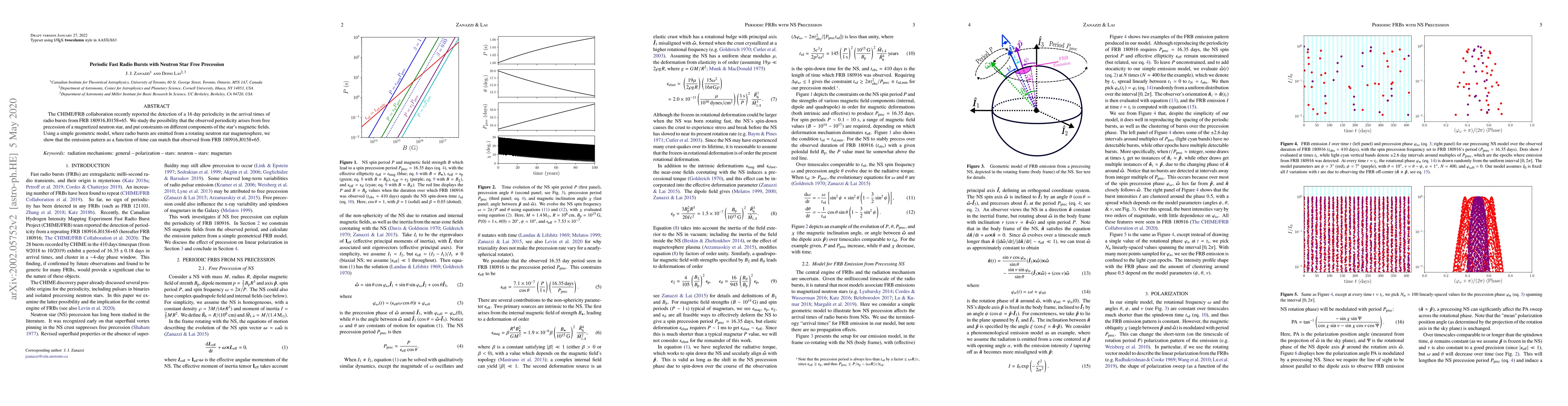The CHIME/FRB collaboration detected a 16-day periodicity in FRB 180916.J0158+65's radio bursts, suggesting they may arise from a neutron star's magnetic field precession. The study models the emission pattern and constrains the star's magnetic field components.
