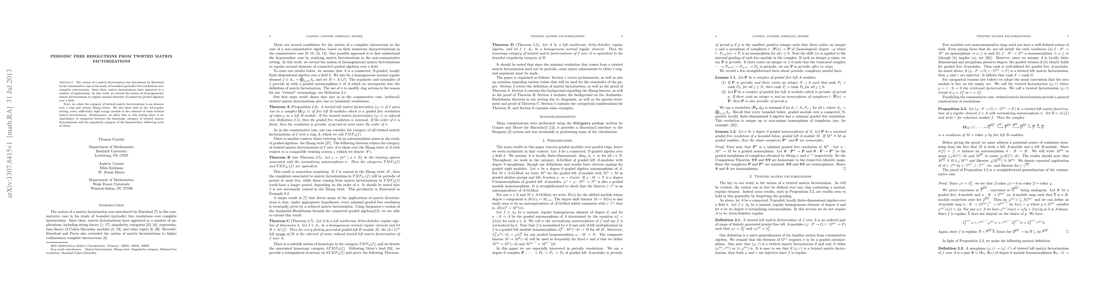 The notion of a matrix factorization was introduced by Eisenbud in the commutative case in his study of bounded (periodic) free resolutions over complete intersections. In this work, we extend the notion of (homogeneous) matrix factorizations to regular normal elements of connected graded algebras over a field. Next, we relate the category of twisted matrix factorizations to an element over a ring and certain Zhang twists. We also show that in the AS-regular setting, every sufficiently high syzygy module is the cokernel of some twisted matrix factorization. Furthermore, we show that in this setting there is an equivalence of categories between the homotopy category of twisted matrix factorizations and the singularity category of the hypersurface, following work of Orlov.