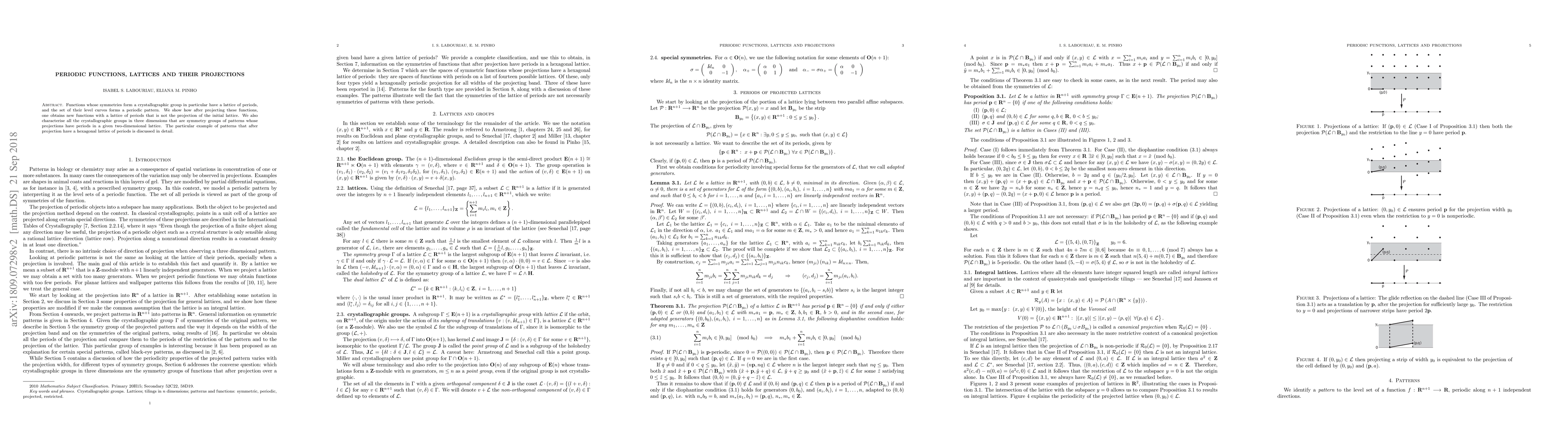 Researchers discovered new functions with lattices of periods that aren't projections of initial lattices. They also characterized crystallographic groups in 3D that preserve patterns' projected period structures.