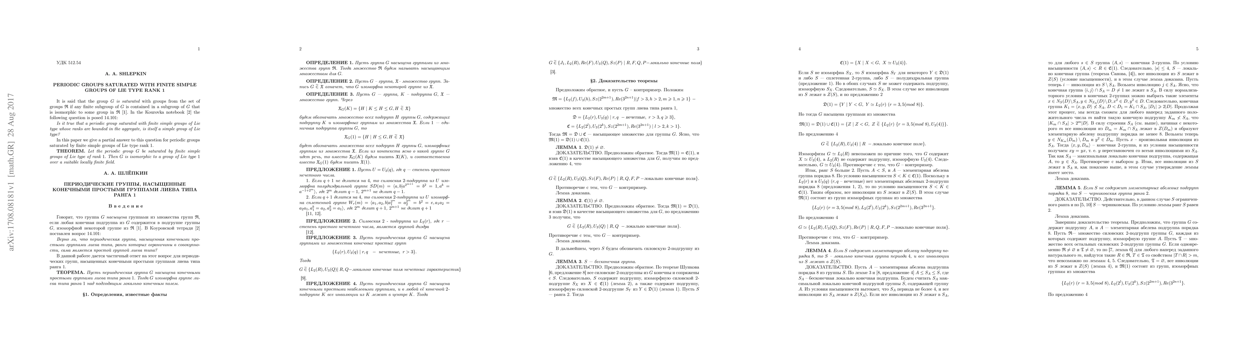 This paper investigates whether a periodic group saturated with finite simple groups of Lie type, specifically those of rank 1, necessarily itself constitutes a simple group of Lie type, addressing a question from the Kourovka notebook. The authors provide a partial affirmative answer to this query.