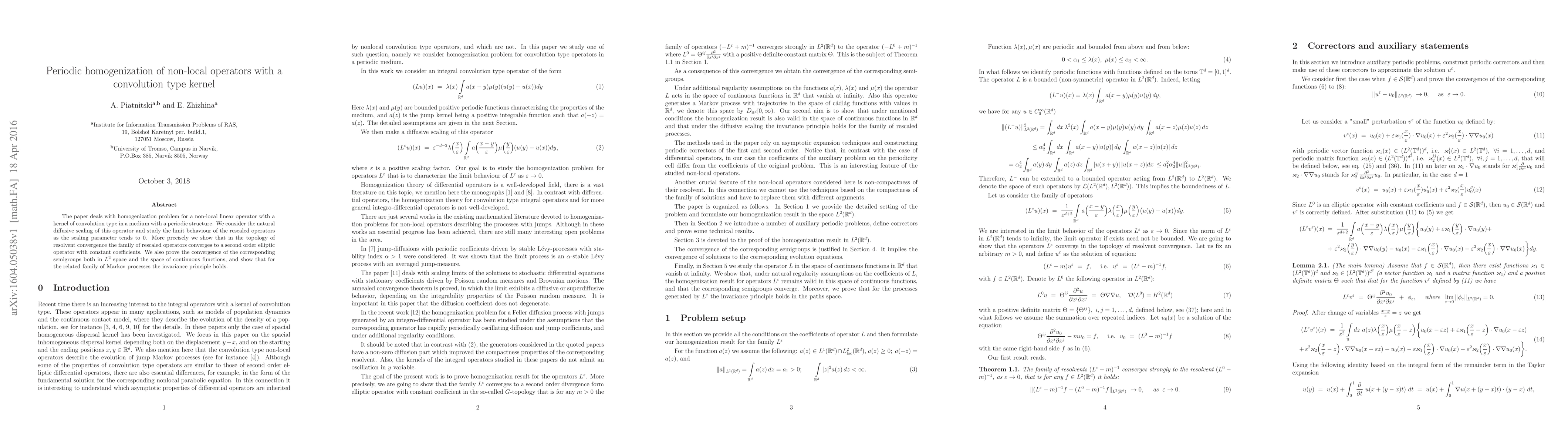 The work presents a novel approach to homogenizing non-local operators with a convolution-type kernel, which differs from existing research in its application and methodology.