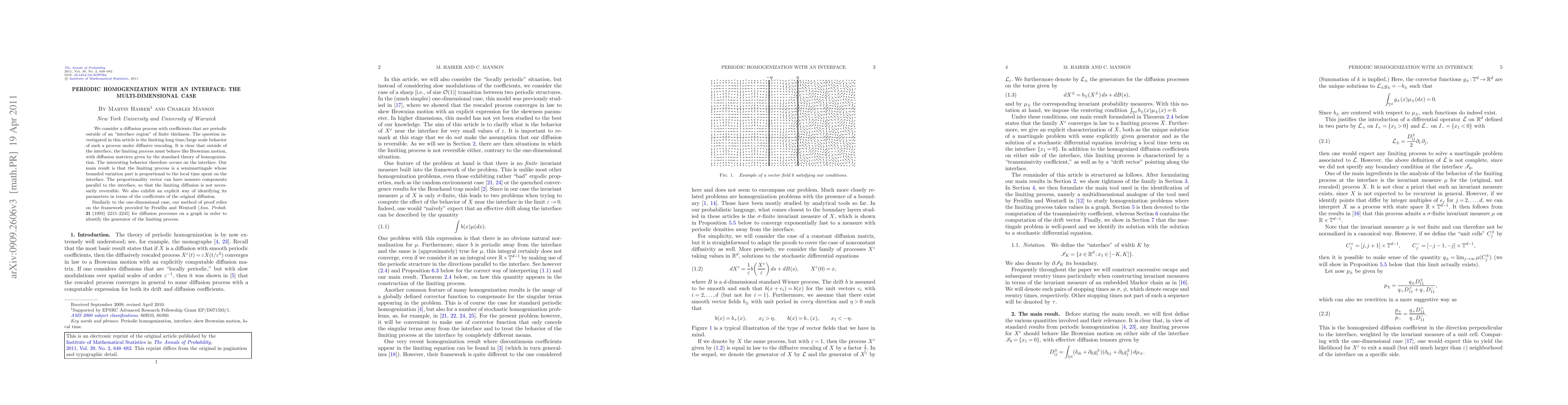 We consider a diffusion process with coefficients that are periodic outside of an "interface region" of finite thickness. The question investigated in this article is the limiting long time/large scale behavior of such a process under diffusive rescaling. It is clear that outside of the interface, the limiting process must behave like Brownian motion, with diffusion matrices given by the standard theory of homogenization. The interesting behavior therefore occurs on the interface. Our main result is that the limiting process is a semimartingale whose bounded variation part is proportional to the local time spent on the interface. The proportionality vector can have nonzero components parallel to the interface, so that the limiting diffusion is not necessarily reversible. We also exhibit an explicit way of identifying its parameters in terms of the coefficients of the original diffusion. Similarly to the one-dimensional case, our method of proof relies on the framework provided by Freidlin and Wentzell [Ann. Probab. 21 (1993) 2215--2245] for diffusion processes on a graph in order to identify the generator of the limiting process.