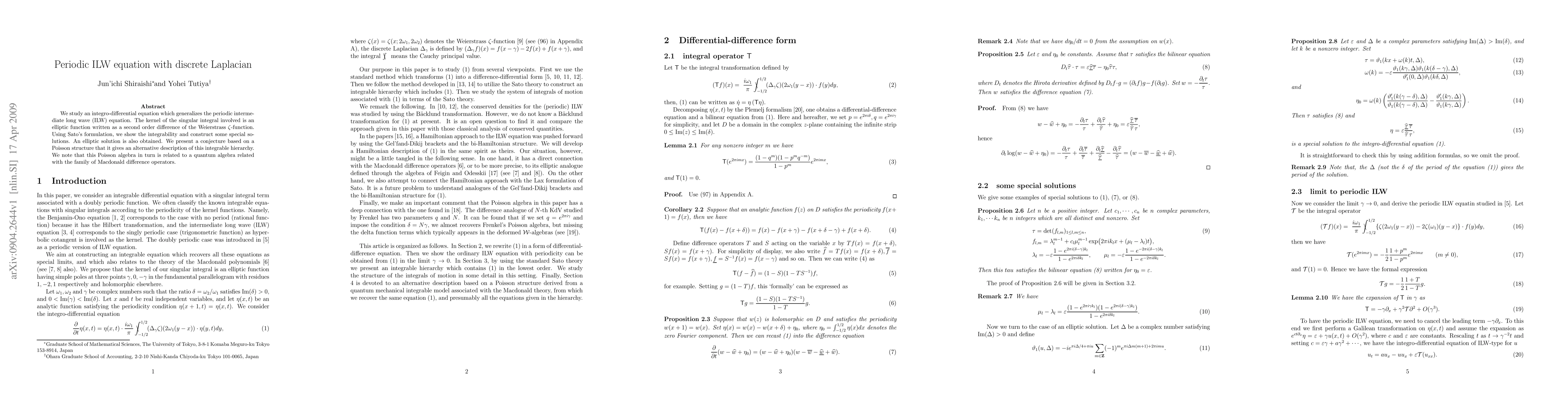 The research employs Sato's formulation and Lax formalism to study an integro-differential equation generalizing the periodic intermediate long wave (ILW) equation. It involves an elliptic function as a second-order difference of the Weierstrass zeta-function and constructs special solutions, including an elliptic solution.