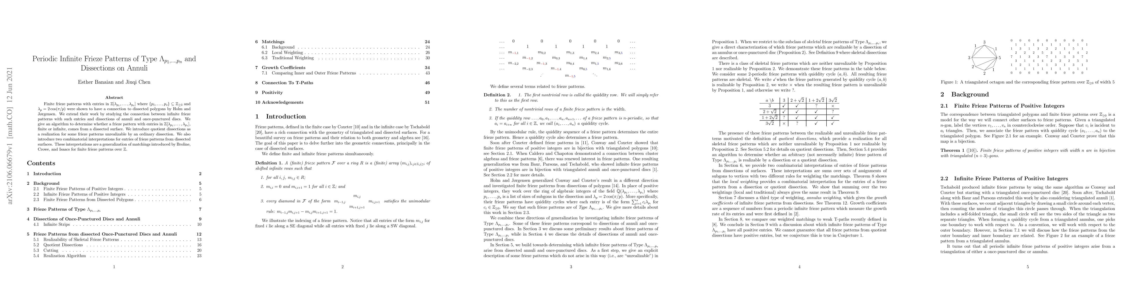 Finite frieze patterns with entries in $\mathbb{Z}[\lambda_{p_1},\ldots,\lambda_{p_s}]$ where $\{p_1,\ldots,p_s\} \subseteq \mathbb{Z}_{\geq 3}$ and $\lambda_p = 2 \cos(\pi/p)$ were shown to have a connection to dissected polygons by Holm and Jorgensen. We extend their work by studying the connection between infinite frieze patterns with such entries and dissections of annuli and once-punctured discs. We give an algorithm to determine whether a frieze pattern with entries in $\mathbb{Z}[\lambda_{p_1},\ldots,\lambda_{p_s}]$, finite or infinite, comes from a dissected surface. We introduce quotient dissections as a realization for some frieze patterns unrealizable by an ordinary dissection. We also introduce two combinatorial interpretations for entries of frieze patterns from dissected surfaces. These interpretations are a generalization of matchings introduced by Broline, Crowe, and Isaacs for finite frieze patterns over $\mathbb{Z}$.
