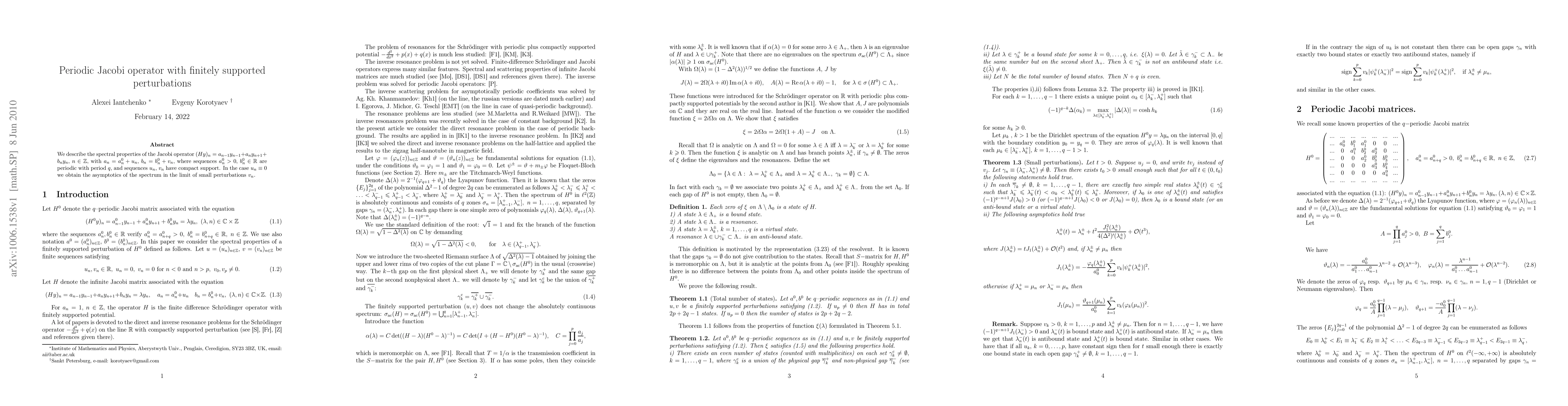 This paper investigates the spectral properties of a periodic Jacobi operator with finitely supported perturbations, focusing on the asymptotic behavior of the spectrum when perturbations are small. The study reveals how compact support perturbations affect the operator's spectrum.