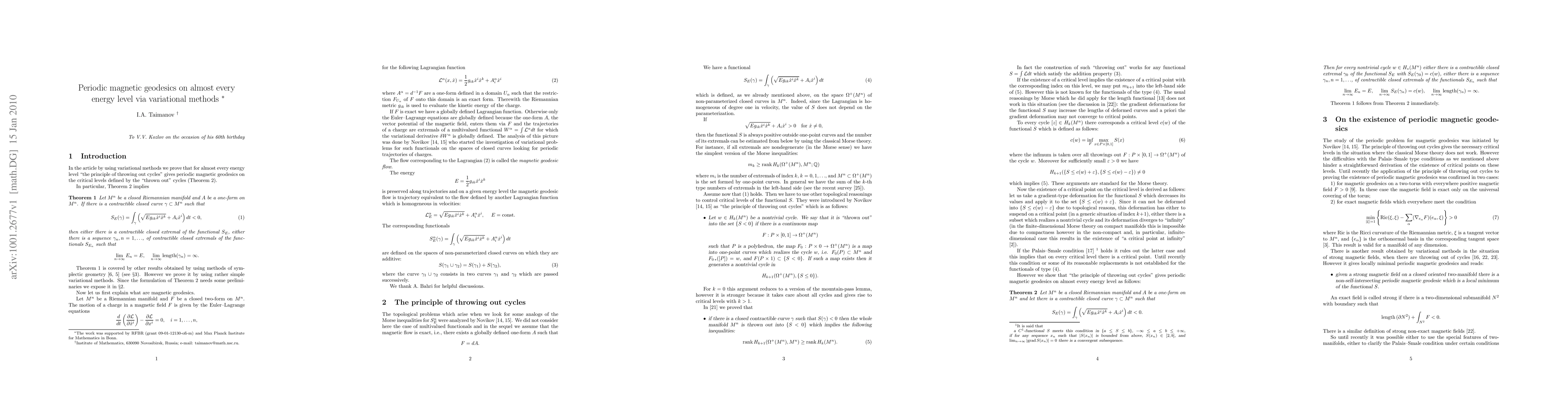 For strong exact magnetic fields the action functional (i.e., the length plus the linear magnetic term) is not bounded from below on the space of closed contractible curves and the lower estimates for critical levels are derived by using the principle of throwing out cycles. It is proved that for almost every energy level the principle of throwing out cycles gives periodic magnetic geodesics on the critical levels defined by the "thrown out" cycles.
