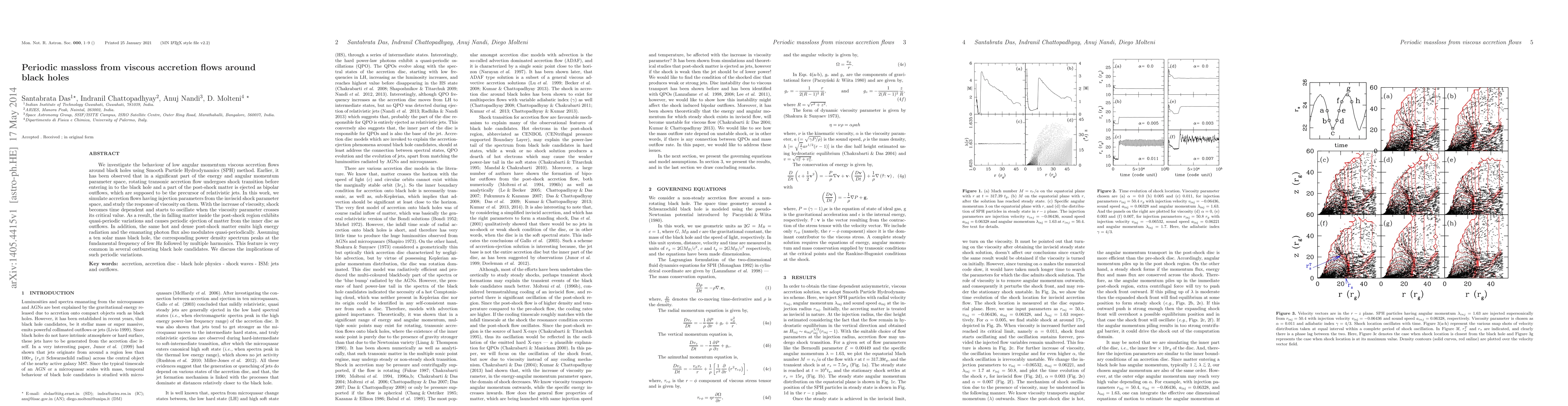 This study uses Smooth Particle Hydrodynamics to simulate low angular momentum viscous accretion flows around black holes, revealing that increased viscosity causes shocks to oscillate and produce quasi-periodic mass ejections and high-energy radiation modulations, common in outbursting black hole candidates.